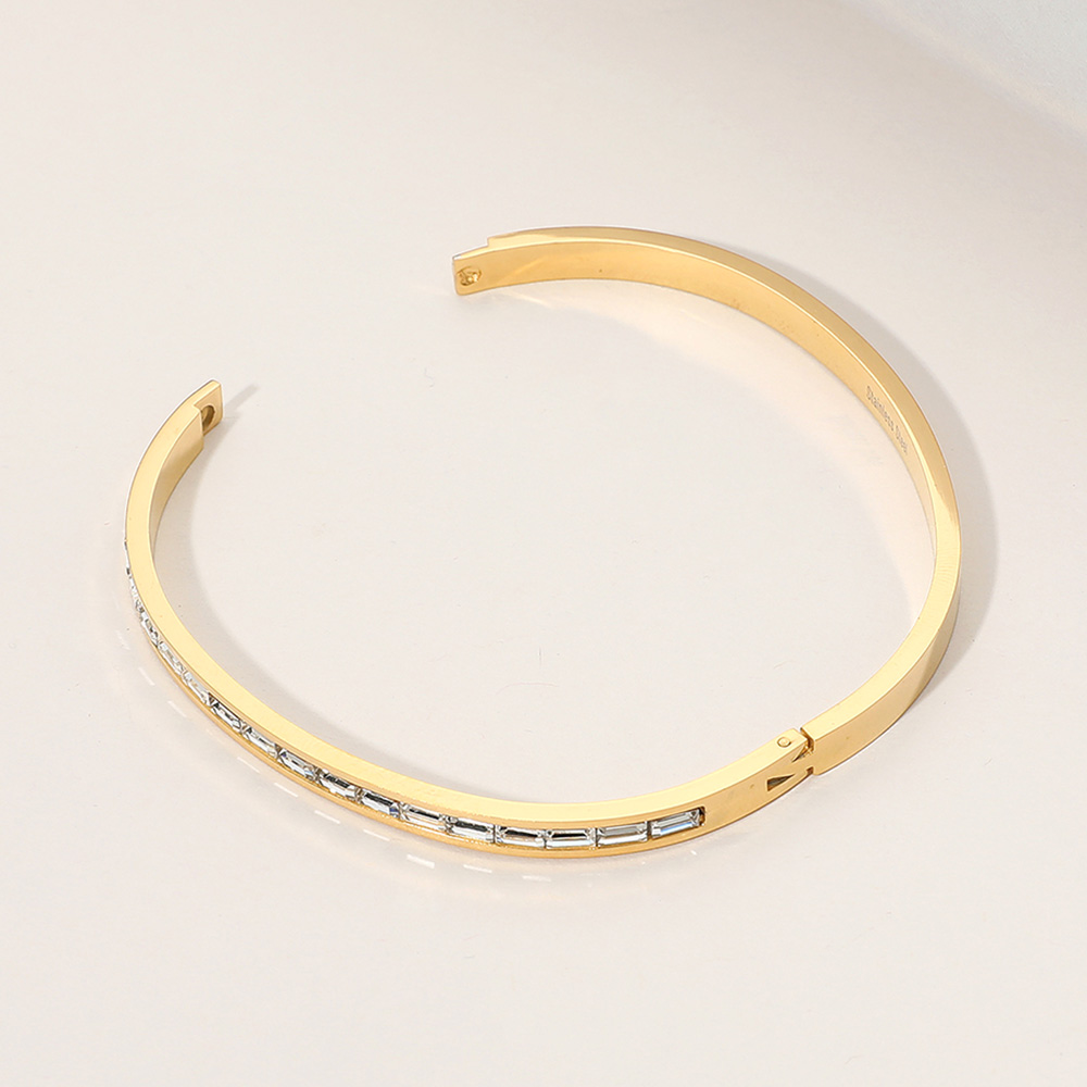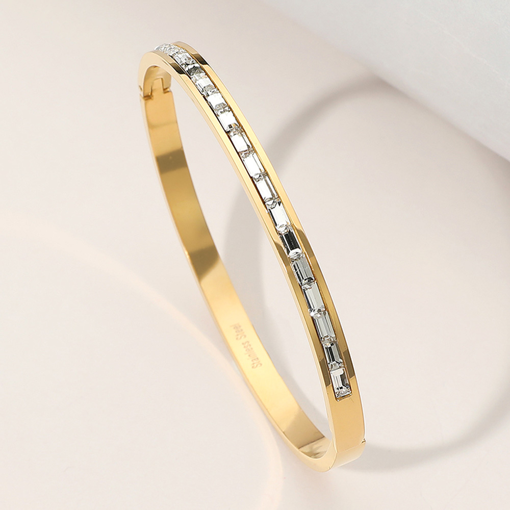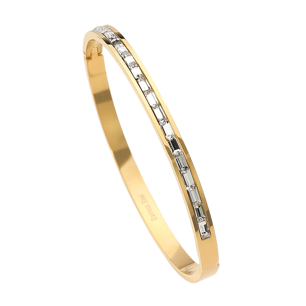 Details • Size : 0.2" H, 2.4" D • Hinged Closure • Elegant slim bangle bracelet adorned with sparkling crystal accents. Perfect for everyday wear or special occasions, offering a refined minimalist style that complements both casual and formal outfits. • Stainless Steel