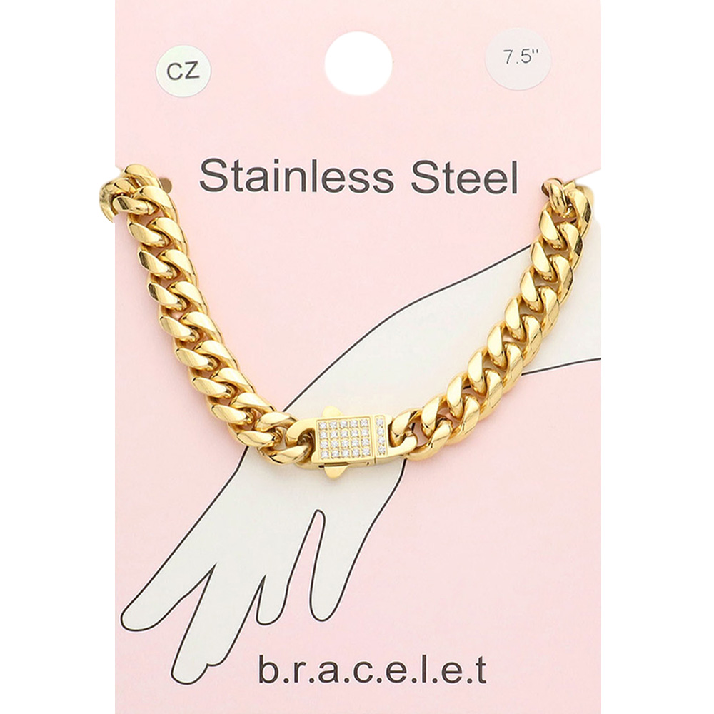Stainless Steel CZ Embellished Metal Chain Link Bracelet