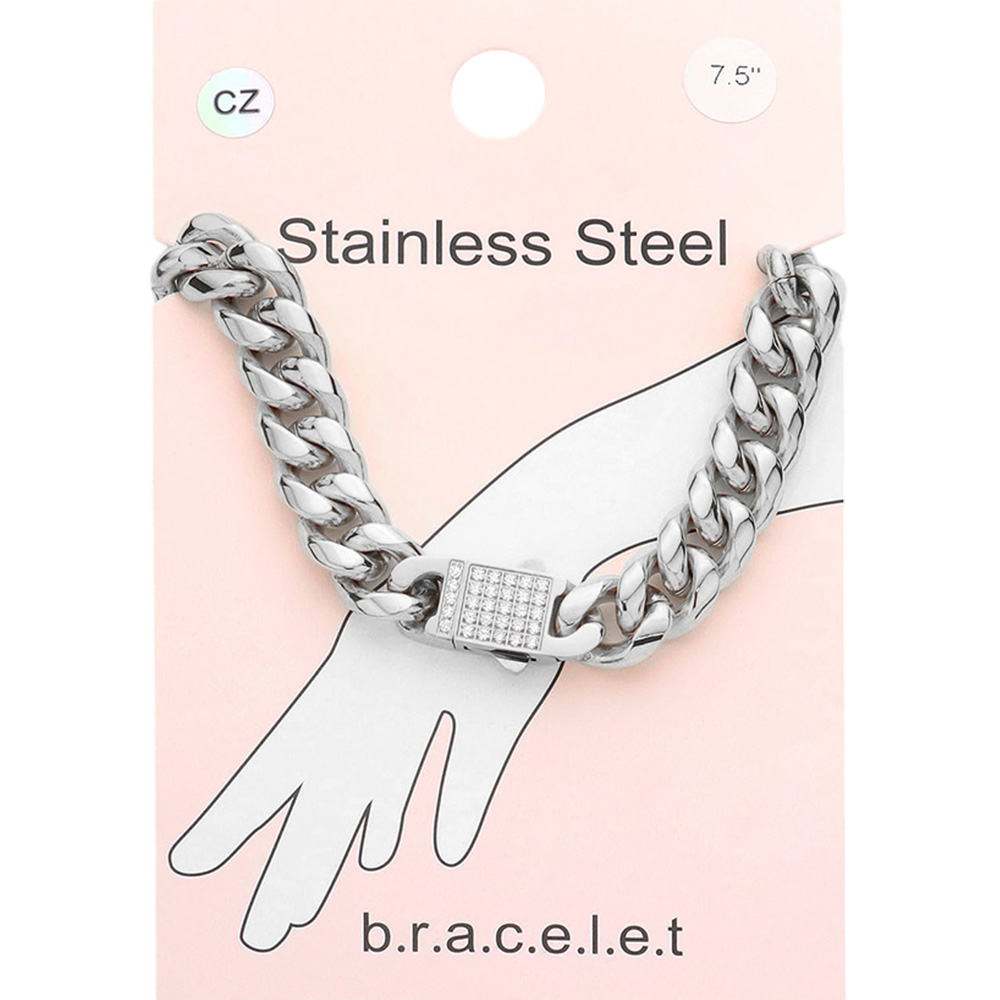 Stainless Steel CZ Embellished Metal Chain Link Bracelet