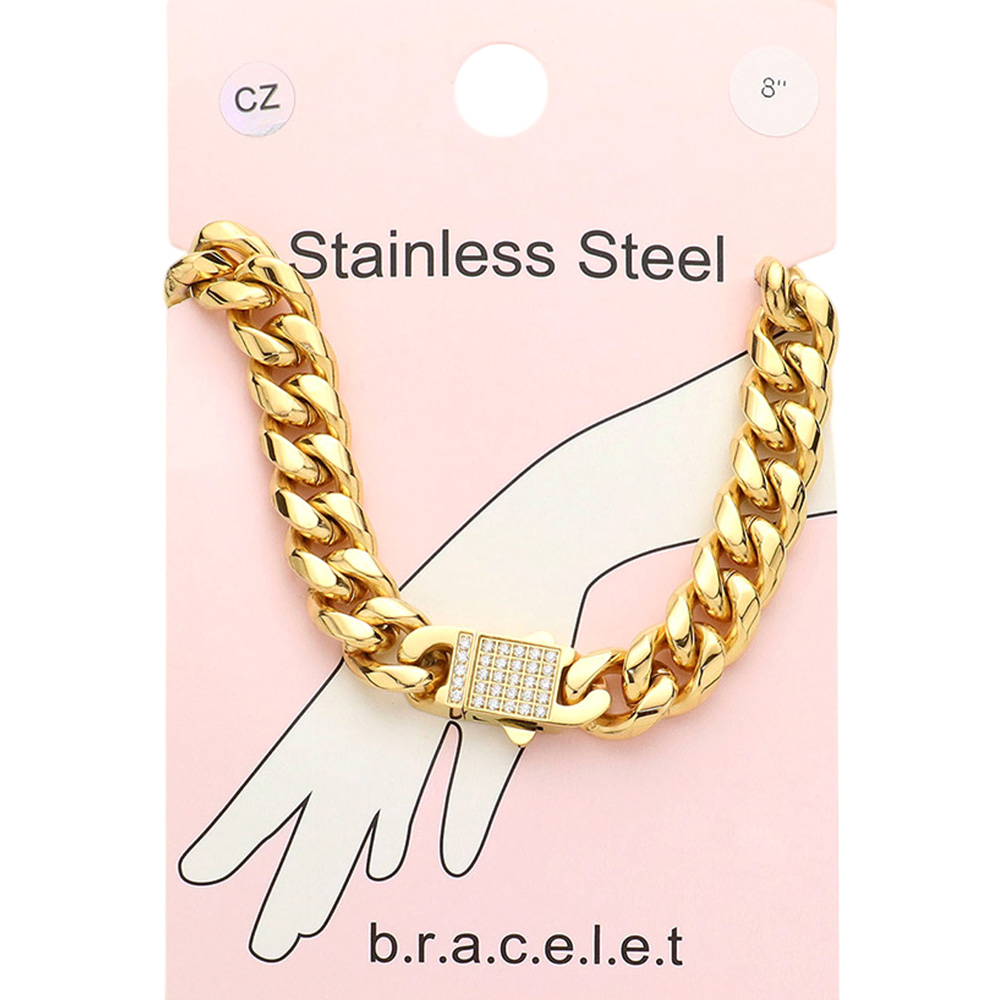 Stainless Steel CZ Embellished Metal Chain Link Bracelet