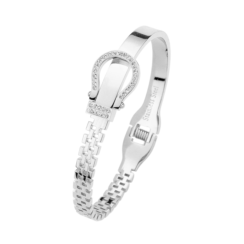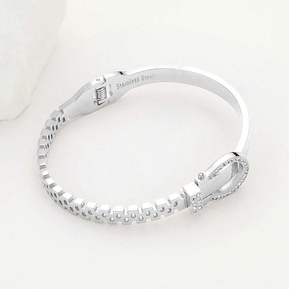 • Add a refined touch to your look with this elegant bracelet featuring a sleek buckle-inspired design and shimmering accents. Perfect for both casual and formal wear, it combines timeless sophistication with contemporary charm, making it an ideal gift or everyday statement piece.