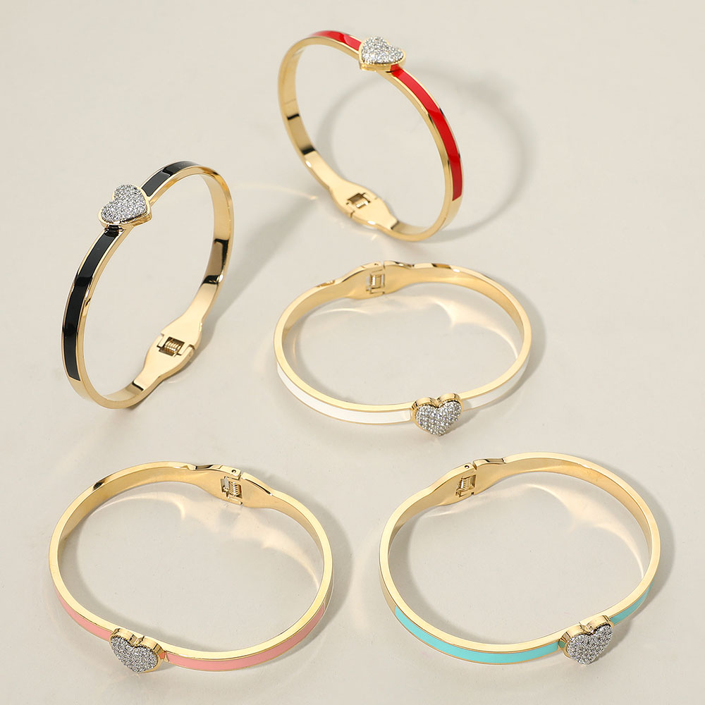 • Sleek hinged bangle bracelet featuring a centered heart accent with shimmering surface detail. Designed for comfortable wear and secure closure, this refined piece layers effortlessly or stands alone for everyday styling and gifting.