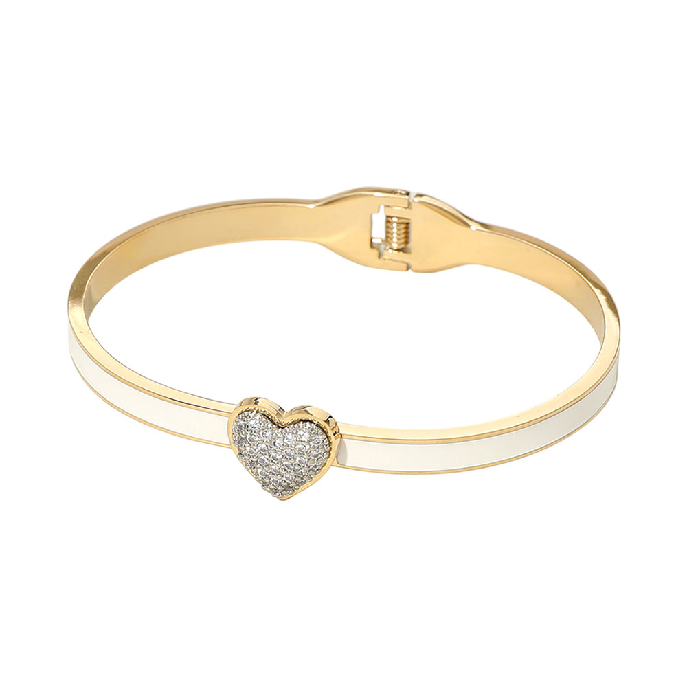 • Sleek hinged bangle bracelet featuring a centered heart accent with shimmering surface detail. Designed for comfortable wear and secure closure, this refined piece layers effortlessly or stands alone for everyday styling and gifting.