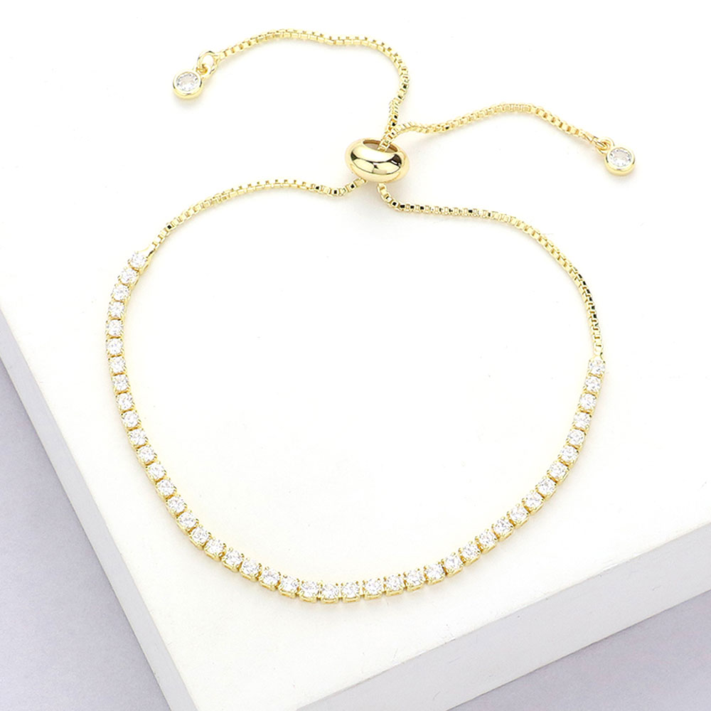 Stainless Steel CZ Stone Tennis Chain Pull Tie Adjustable Bracelet