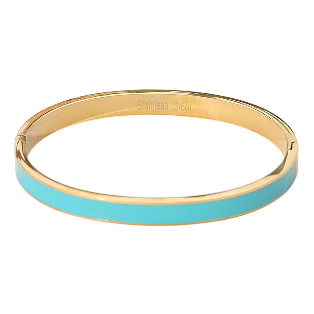Stainless Steel Enamel Inlay Hinged Bangle Bracelet