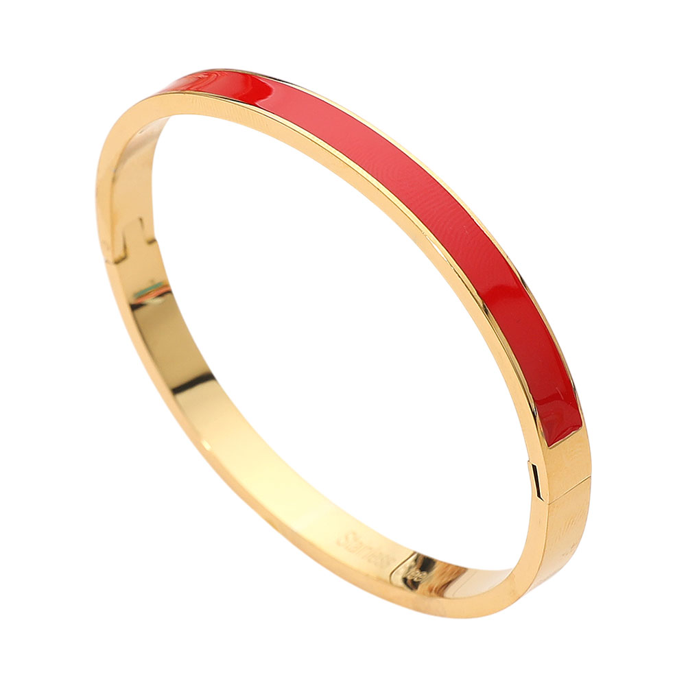 Stainless Steel Enamel Inlay Hinged Bangle Bracelet