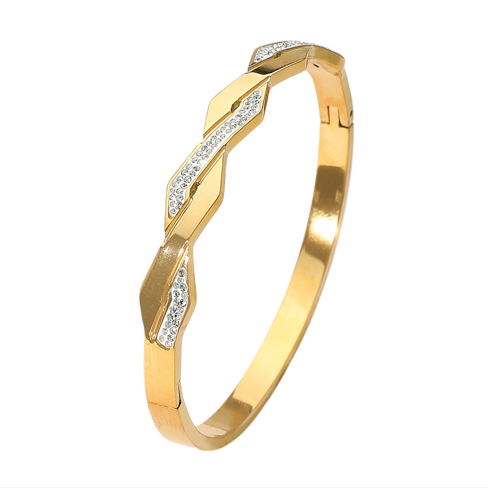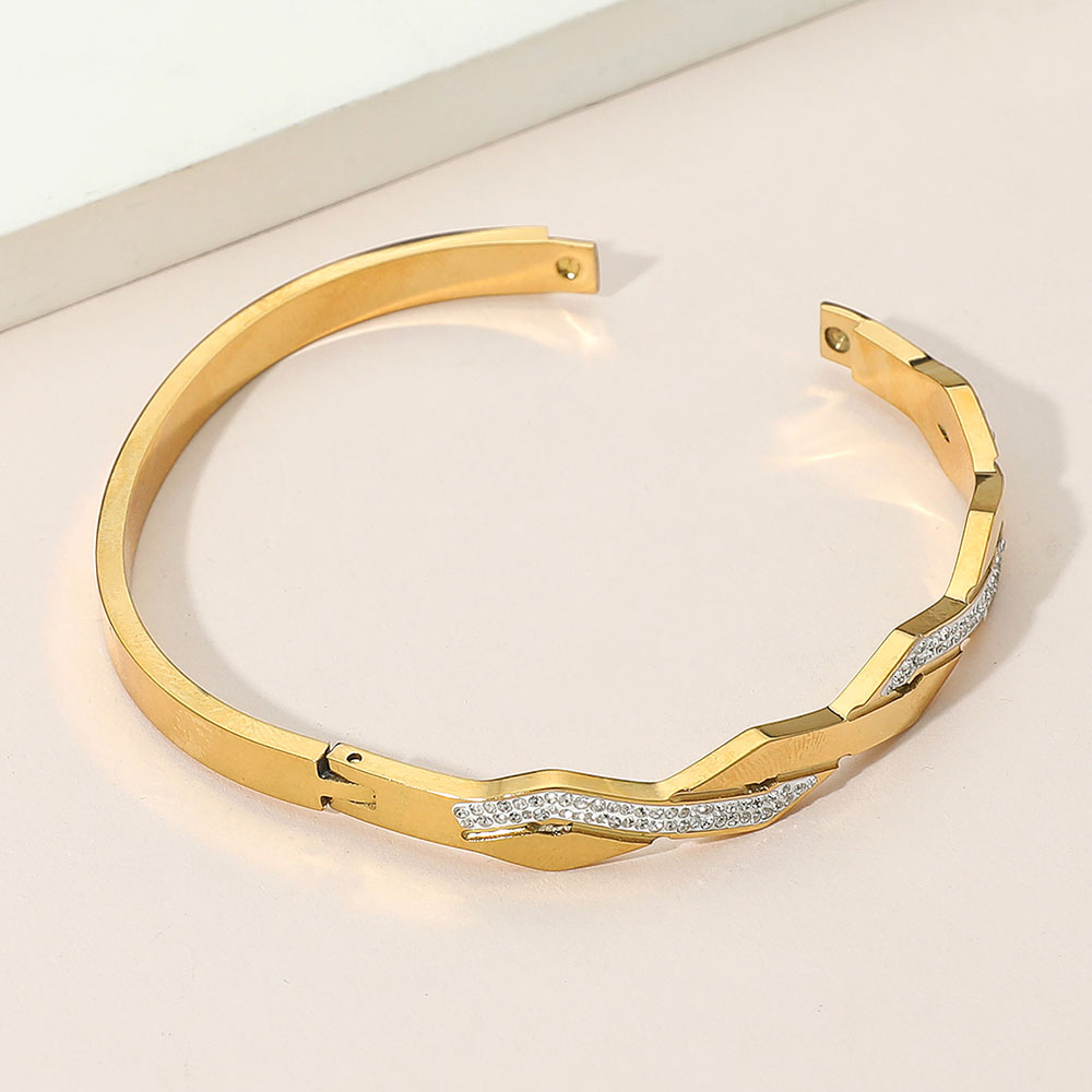 Stainless Steel Geometric CZ Stone Paved Hinged Bangle Bracelet