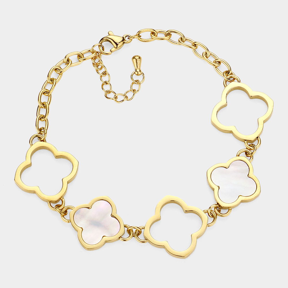 Gold Dipped Mother of Pearl Quatrefoil Charm Bracelet