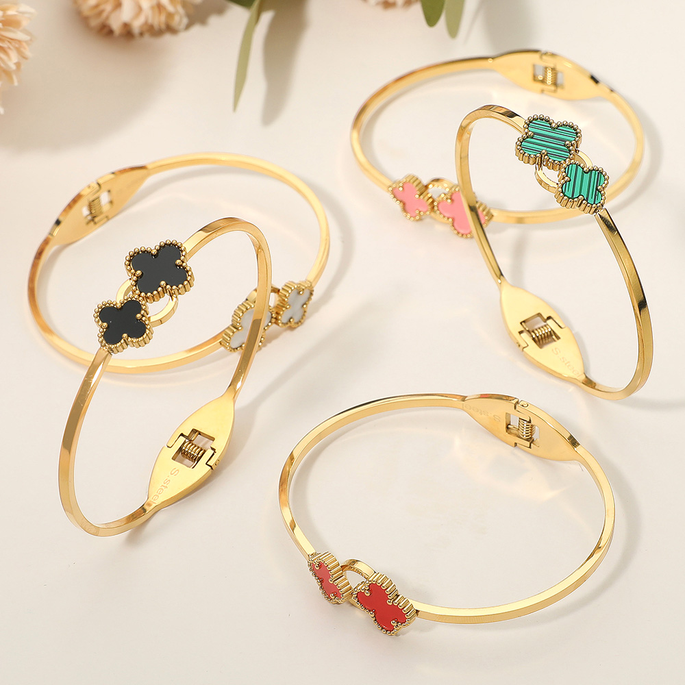 Details • Size : 0.6" H, 2.4" D • Hinged Closure • Bring elegance to your wrist with this quatrefoil charm hinged bangle bracelet. Designed with sleek detailing and a secure clasp, it’s perfect for both everyday wear and special occasions. A timeless accessory that adds refined charm and makes a thoughtful gift choice. • Stainless Steel