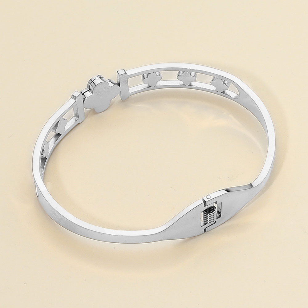 Stainless Steel Quatrefoil Cutout Hinged Bangle Bracelet Stainless Steel Quatrefoil Cutout Hinged Bangle Bracelet Stainless Steel Quatrefoil Cutout Hinged Bangle Bracelet