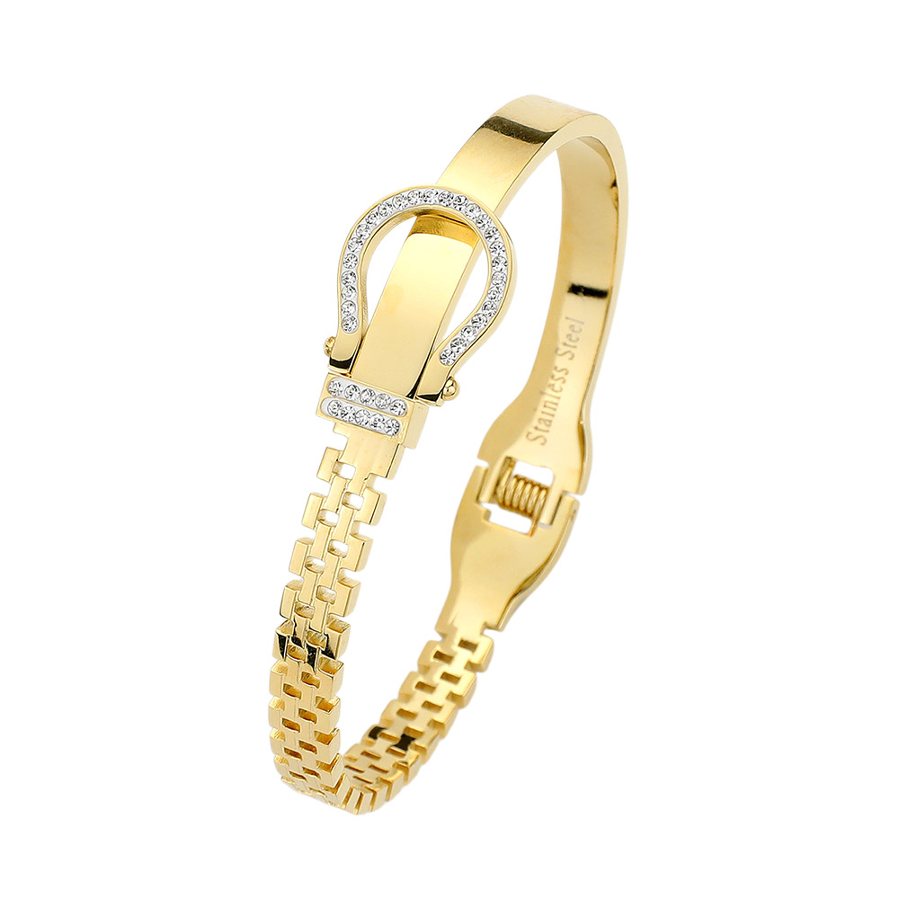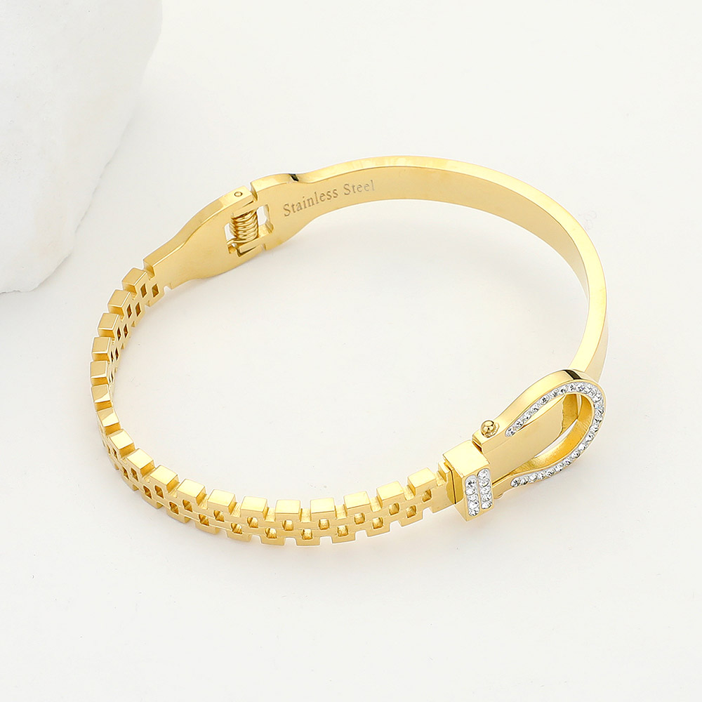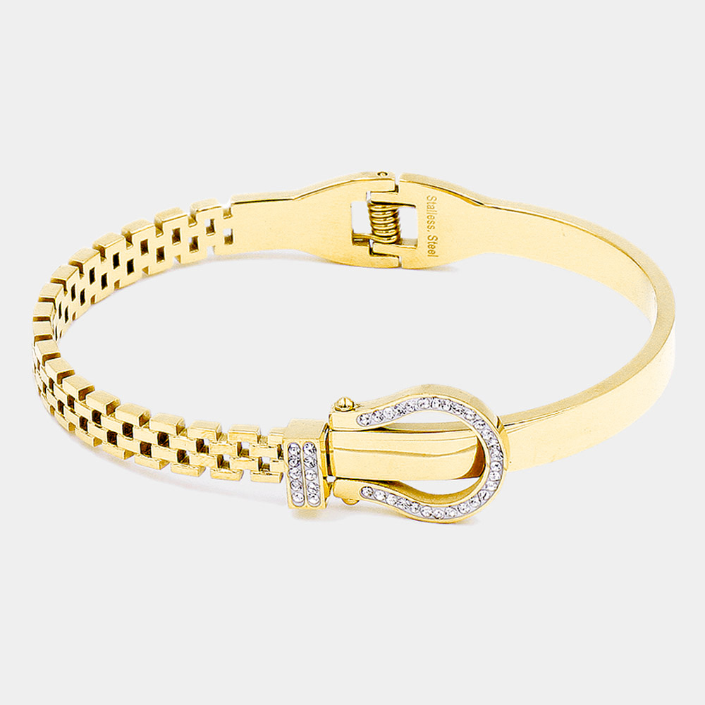 • Add a refined touch to your look with this elegant bracelet featuring a sleek buckle-inspired design and shimmering accents. Perfect for both casual and formal wear, it combines timeless sophistication with contemporary charm, making it an ideal gift or everyday statement piece.