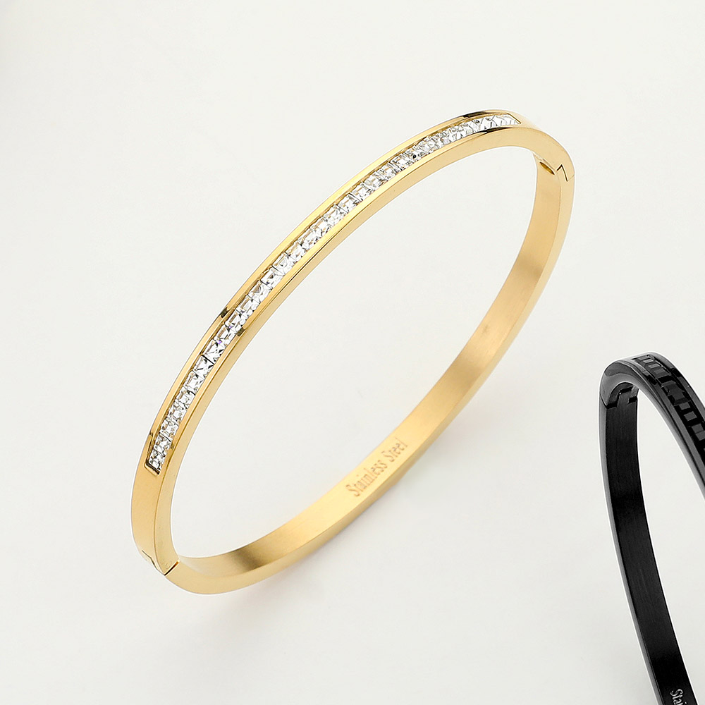 Stainless Steel Rhinestone Paved Hinged Bangle Bracelet