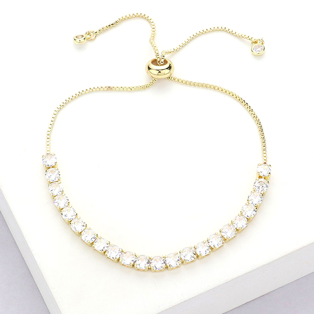 Stainless Steel Round CZ Stone Tennis Chain Pull Tie Adjustable Bracelet