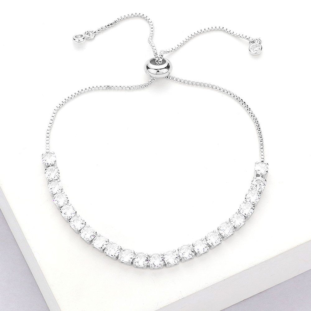 Stainless Steel Round CZ Stone Tennis Chain Pull Tie Adjustable Bracelet Stainless Steel Round CZ Stone Tennis Chain Pull Tie Adjustable Bracelet
