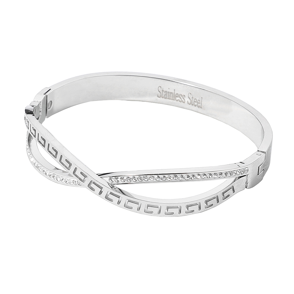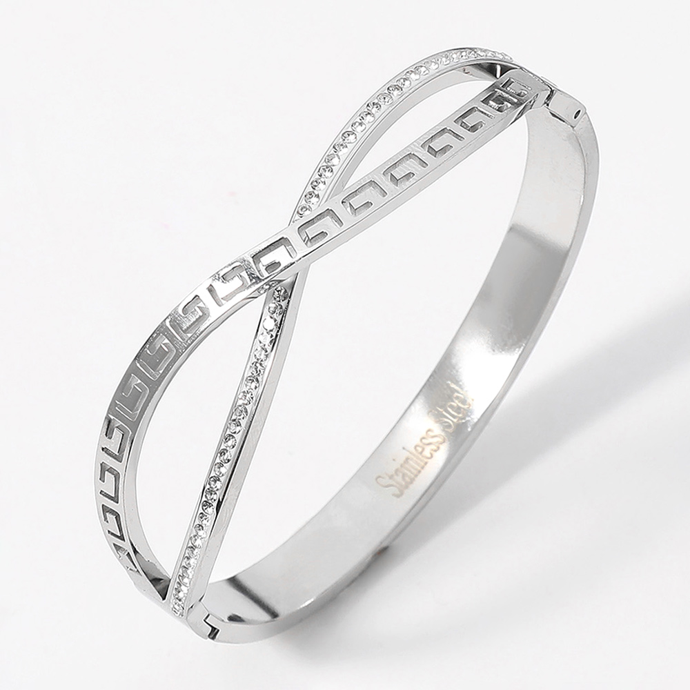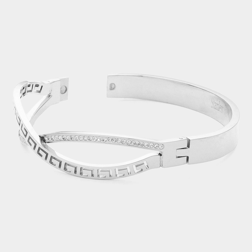 Stainless Steel Stone Paved Greek Pattern Infinity Pointed Hinged Bangle Bracelet