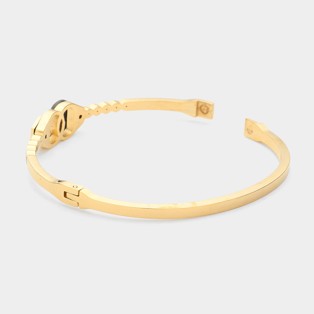 Stainless Steel Stone Paved Handcuff Hinged Bangle Bracelet