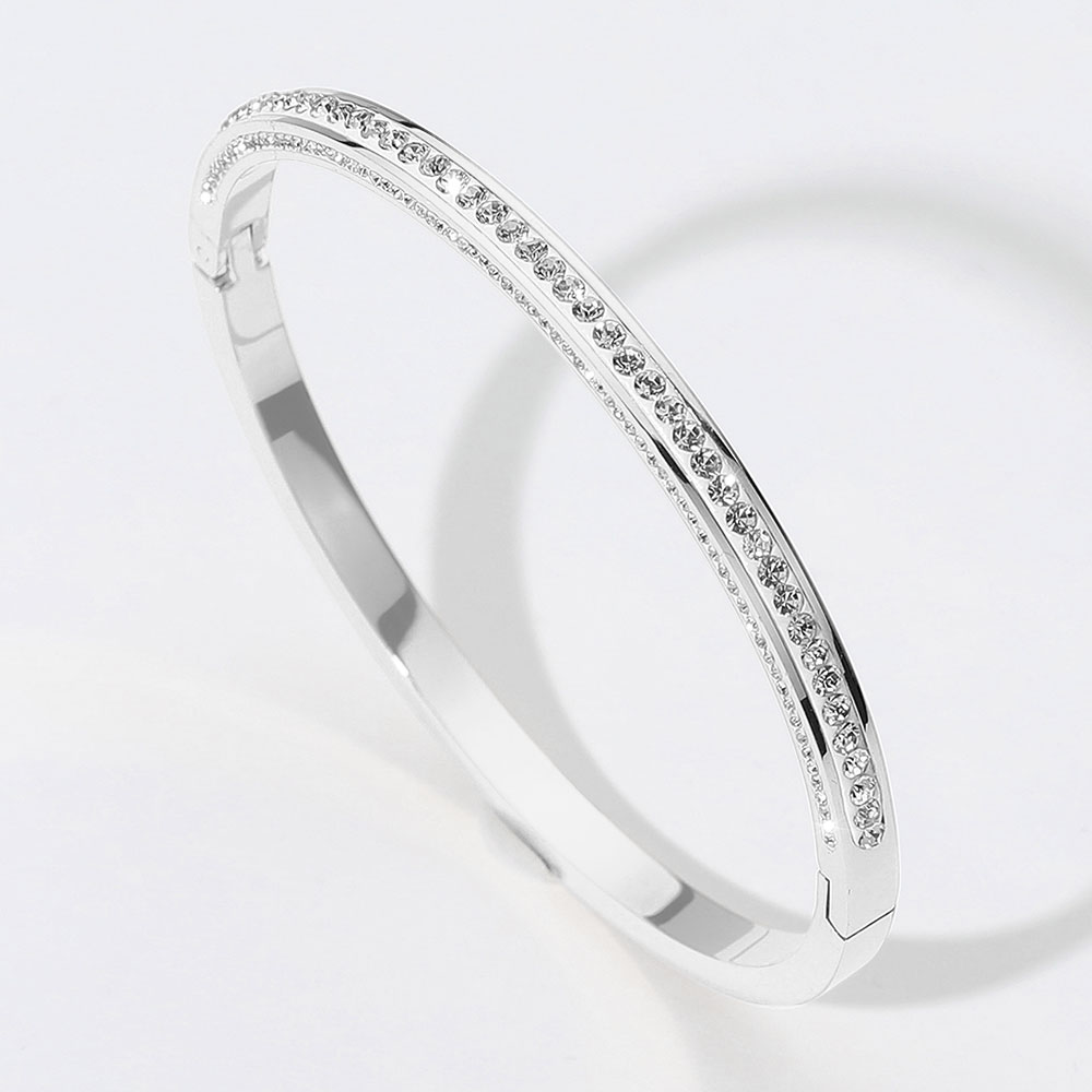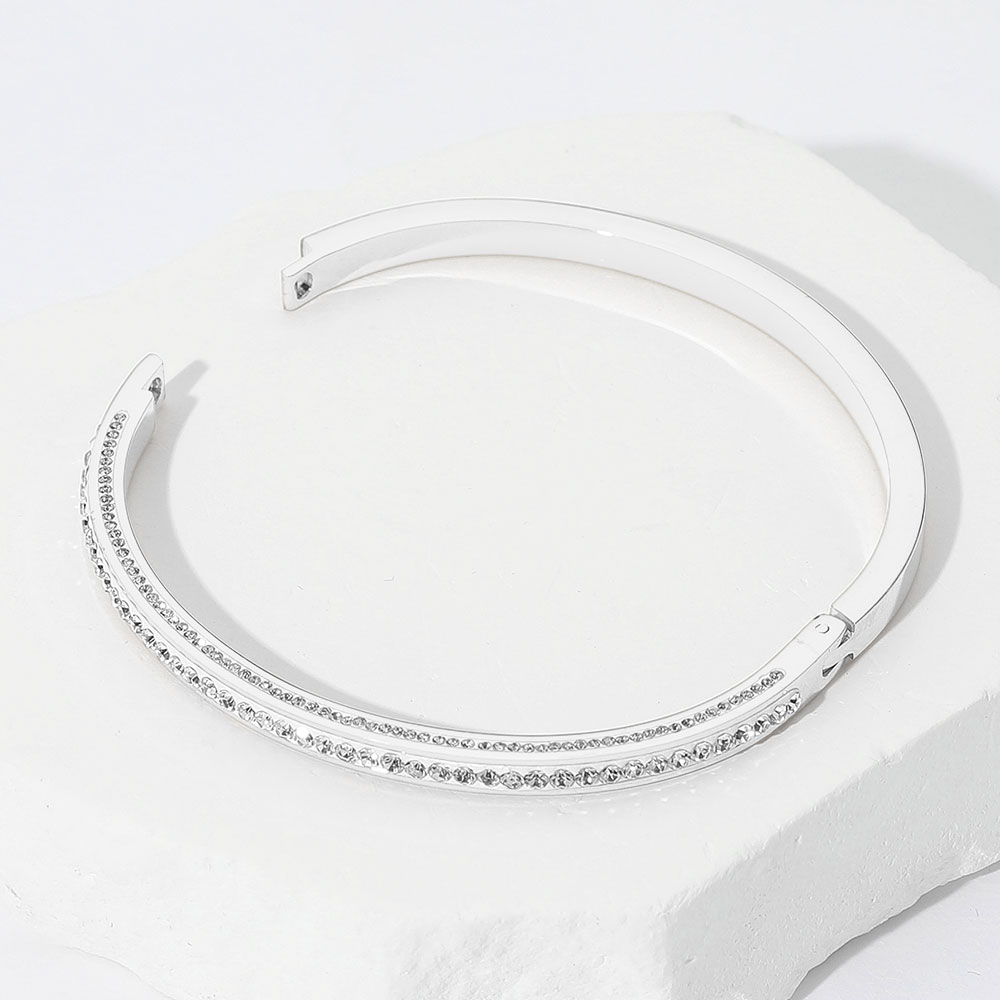 Stainless Steel Stone Paved Hinged Bangle Bracelet