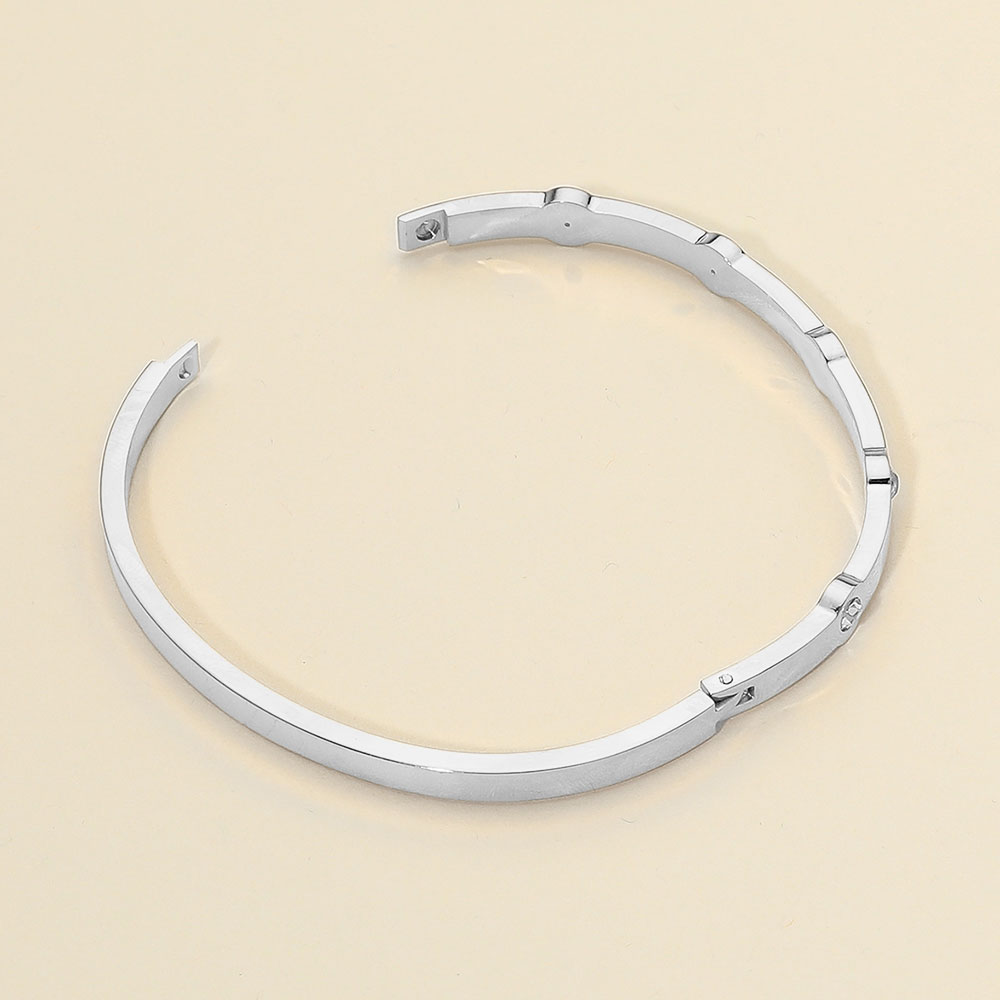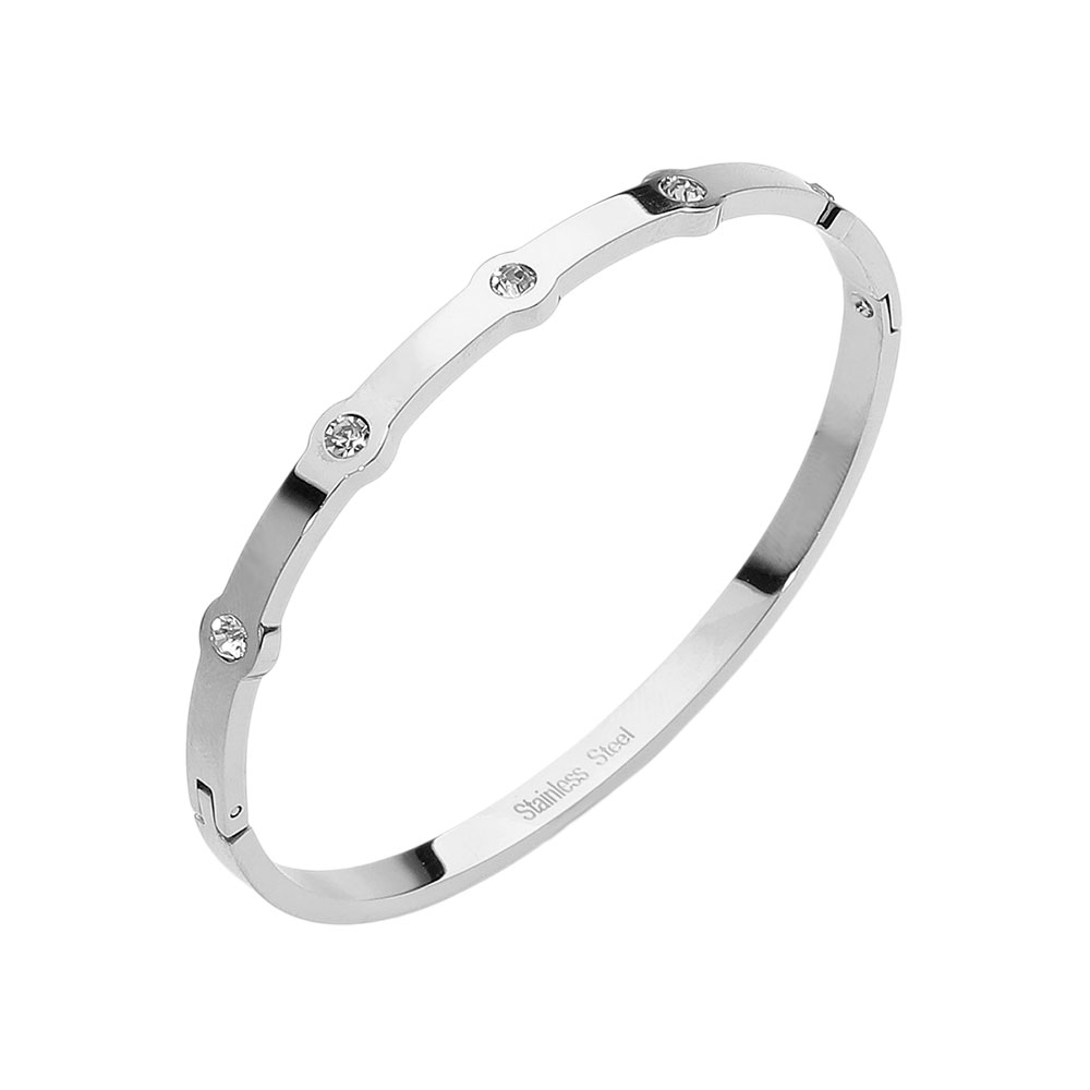 Stainless Steel Stone Paved Slim Hinged Bangle Bracelet