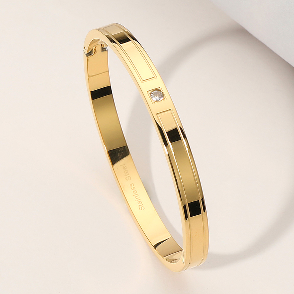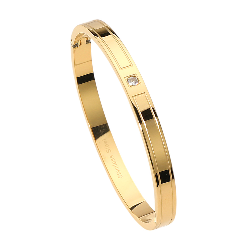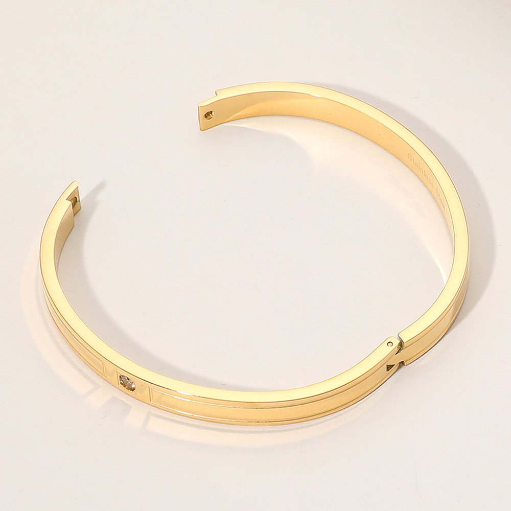 Stainless Steel Stone Pointed Hinged Bangle Bracelet