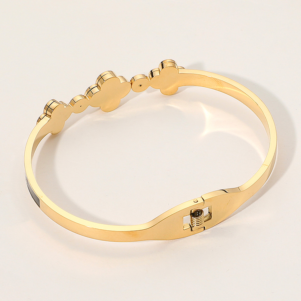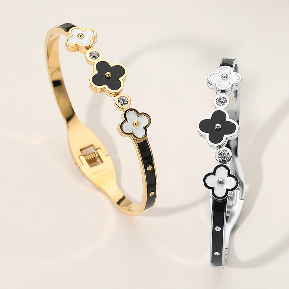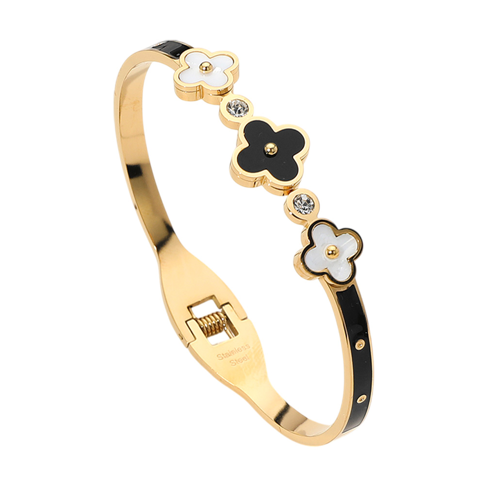 • Refined and stylish, this clover bangle bracelet features alternating quatrefoil motifs with sparkling crystal accents. Its sleek design brings a touch of modern elegance, making it perfect for both everyday wear and special occasions. A versatile accessory that pairs beautifully with any outfit.