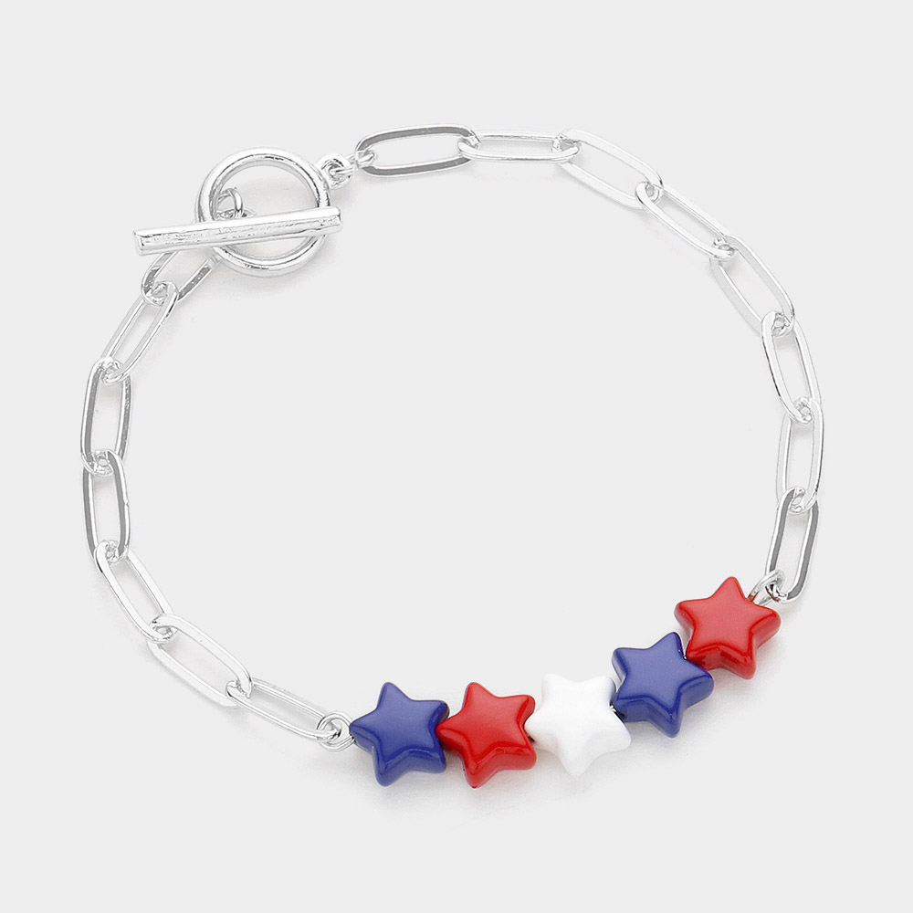 American USA Teardrop Stone Link Dropdown Evening Earrings