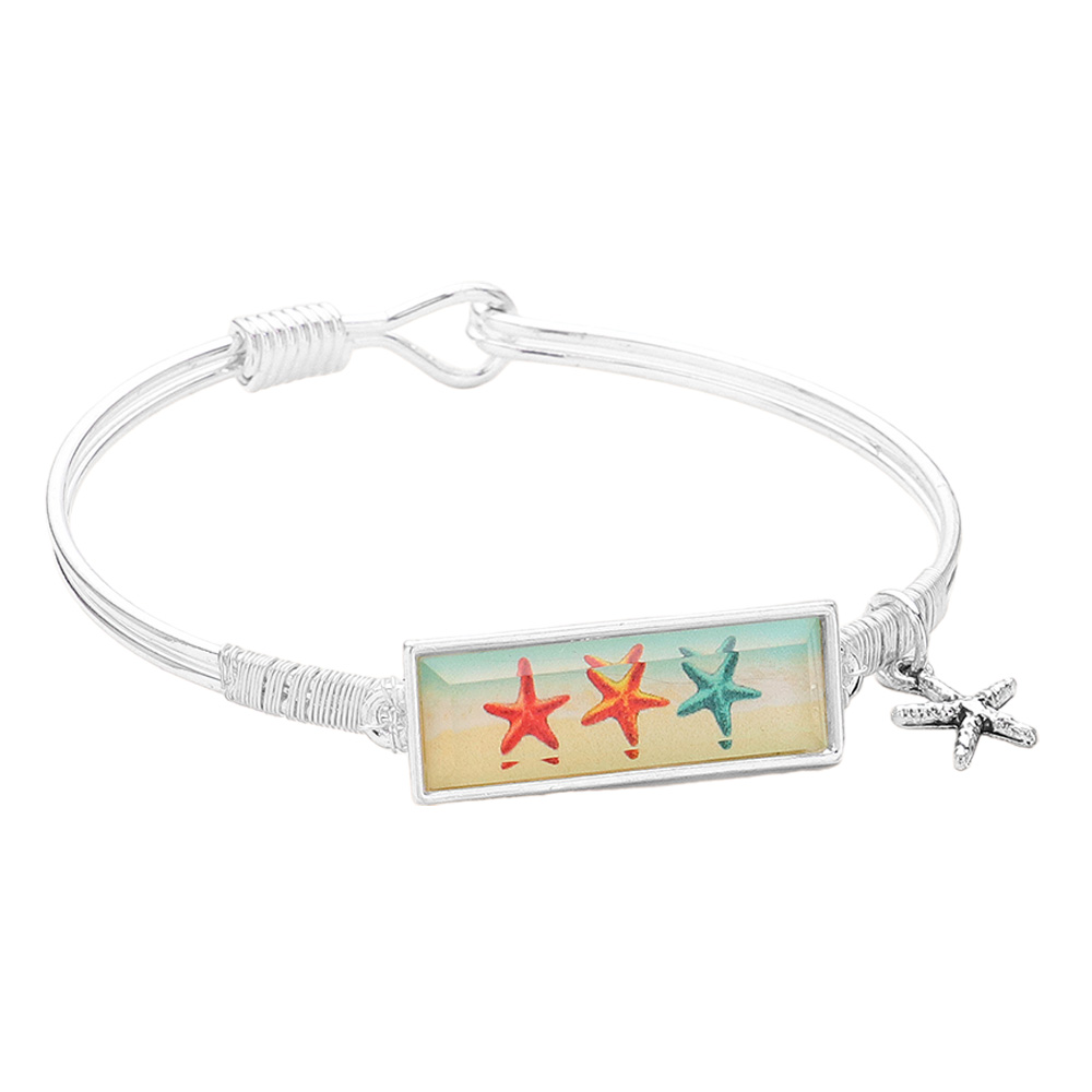 Antique Metal Sea Turtle Charm Beaded Stretch Bracelet