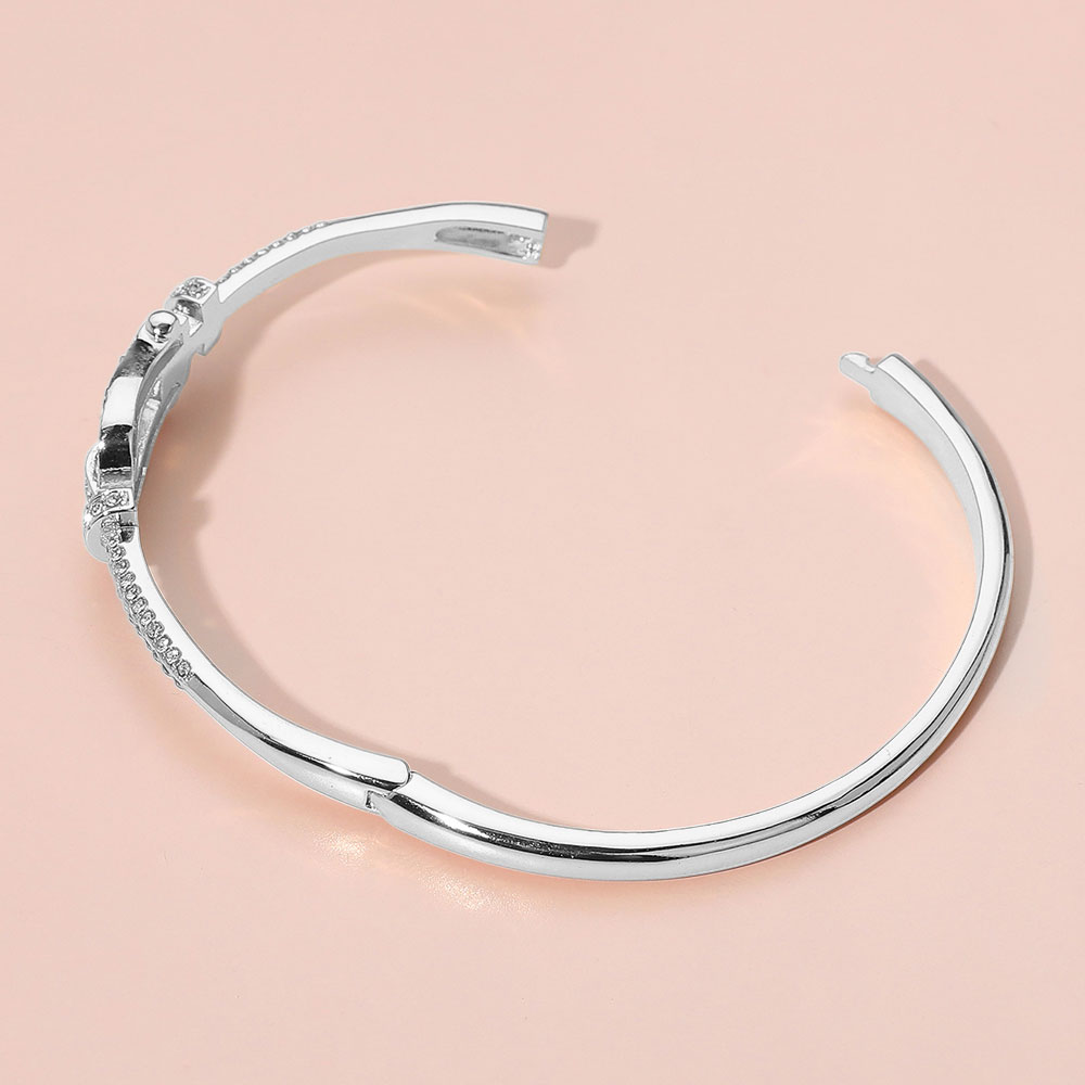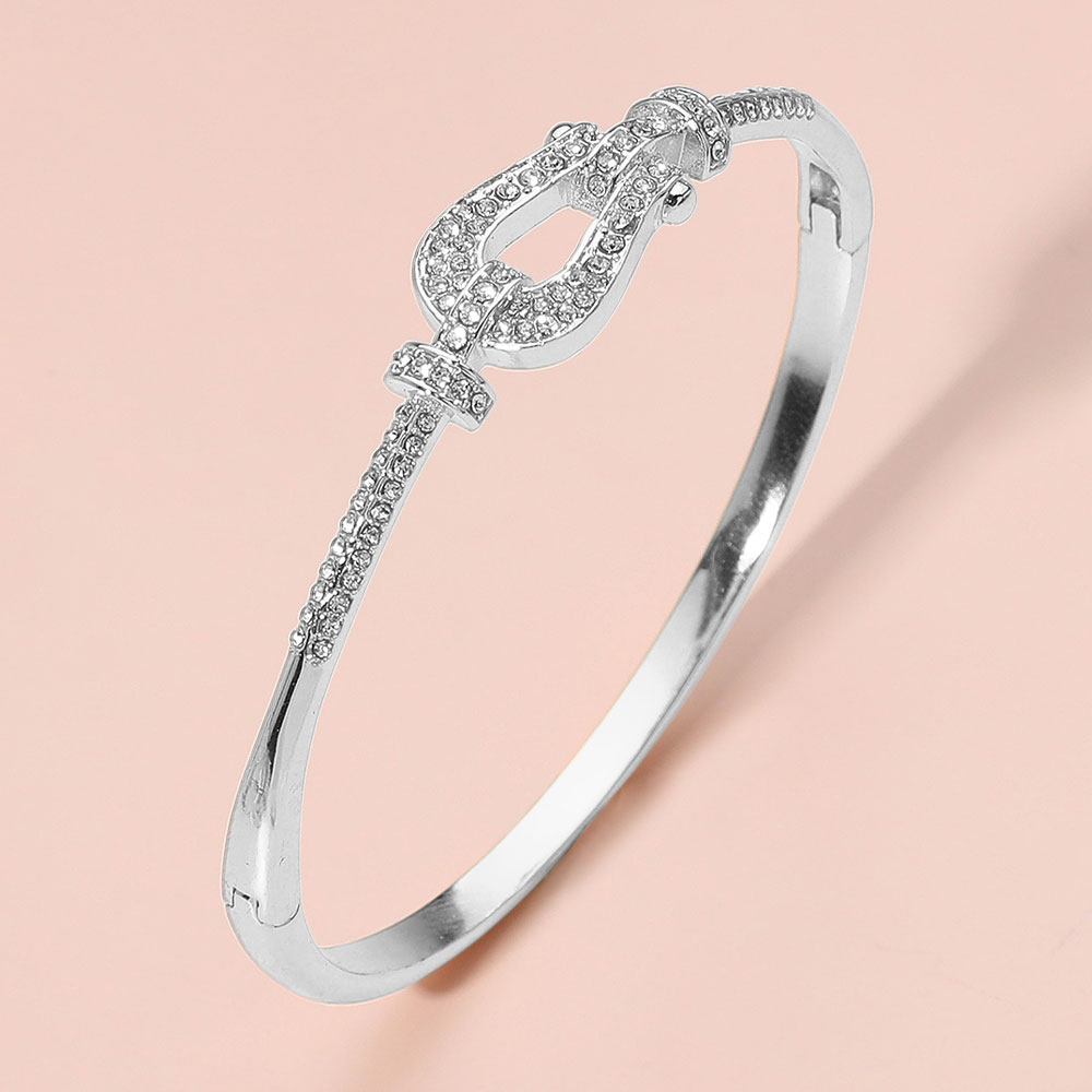 Details • Size : 0.5" H, 2.4" D • Hinged Closure • Sleek bangle bracelet featuring a sparkling crystal-studded buckle design. Perfect for adding sophistication to casual outfits or making a refined statement at formal events. • Brass • Lead and Nickel Compliant