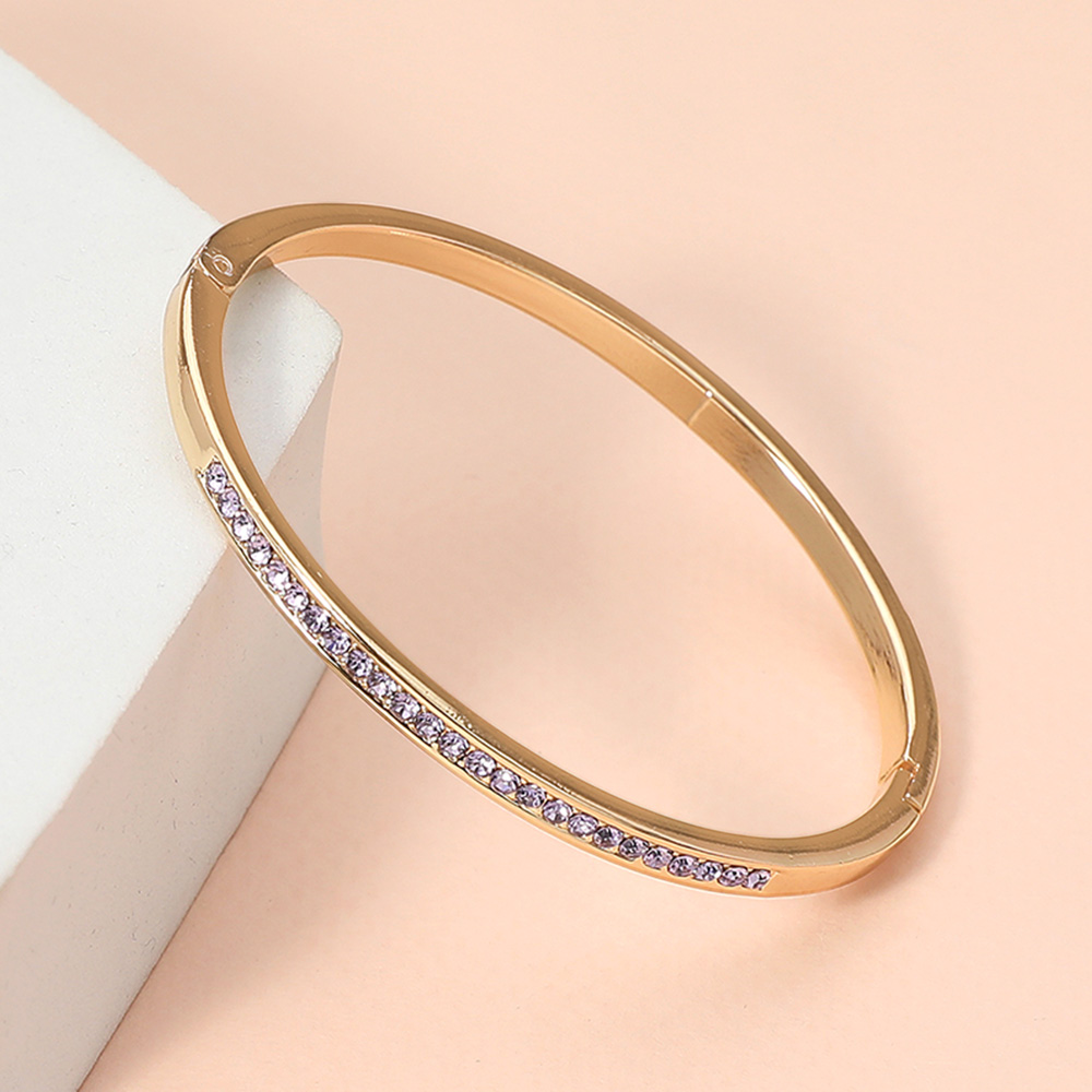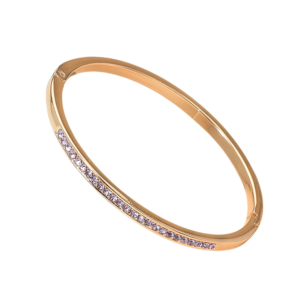 • Elegant slim bangle bracelet featuring a single row of sparkling crystals. A timeless, lightweight accessory perfect for layering or wearing solo for a subtle, refined touch.