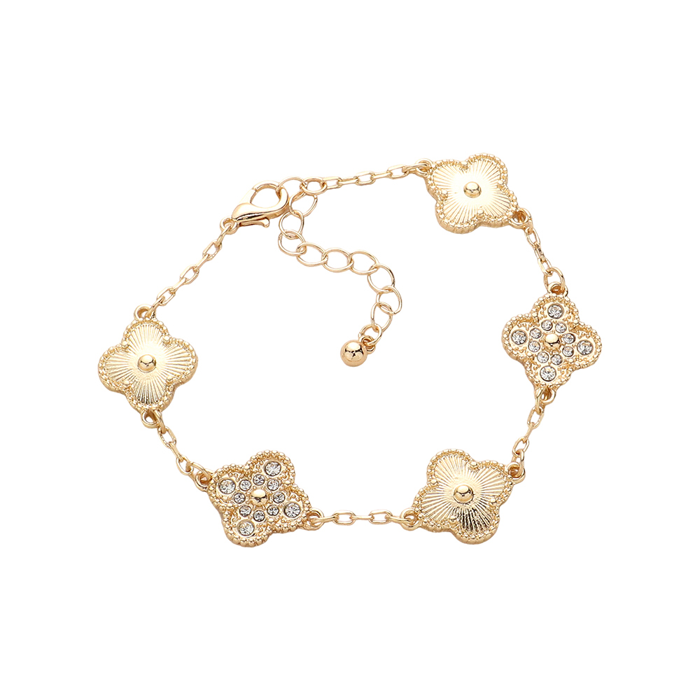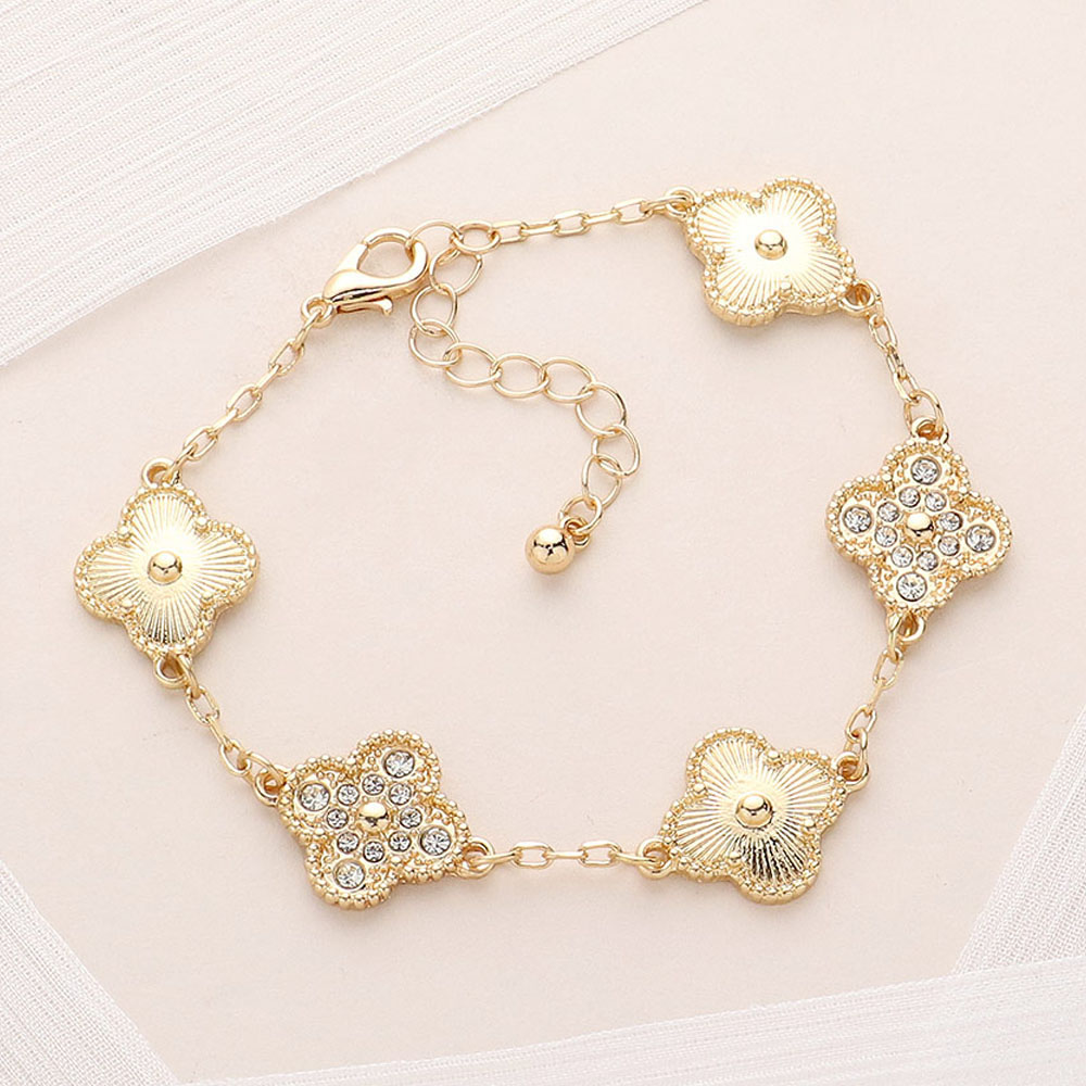 Stone Paved Mearl Quatrefoil Link Bracelet