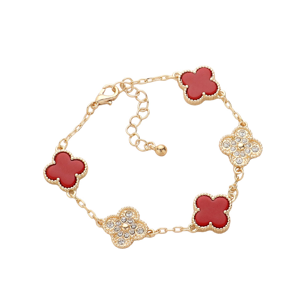 Stone Paved Natural Stone Quatrefoil Link Bracelet