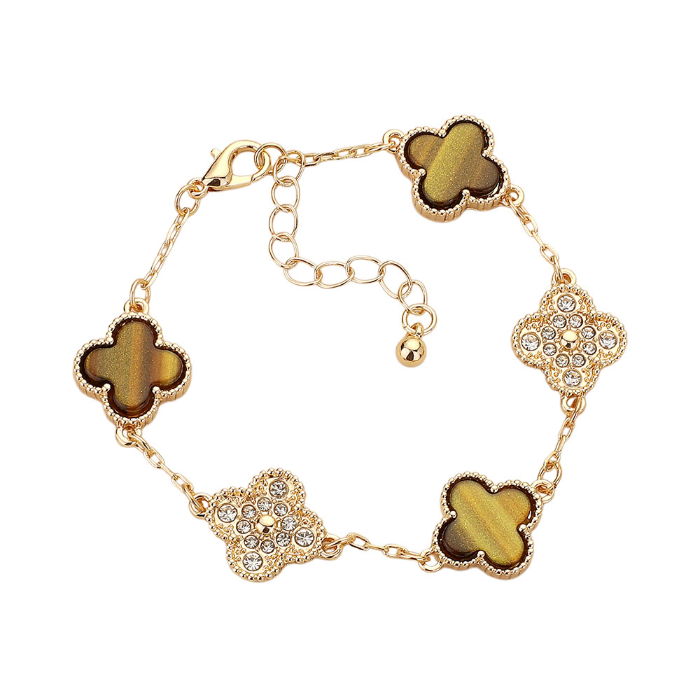 Stone Paved Natural Stone Quatrefoil Link Bracelet