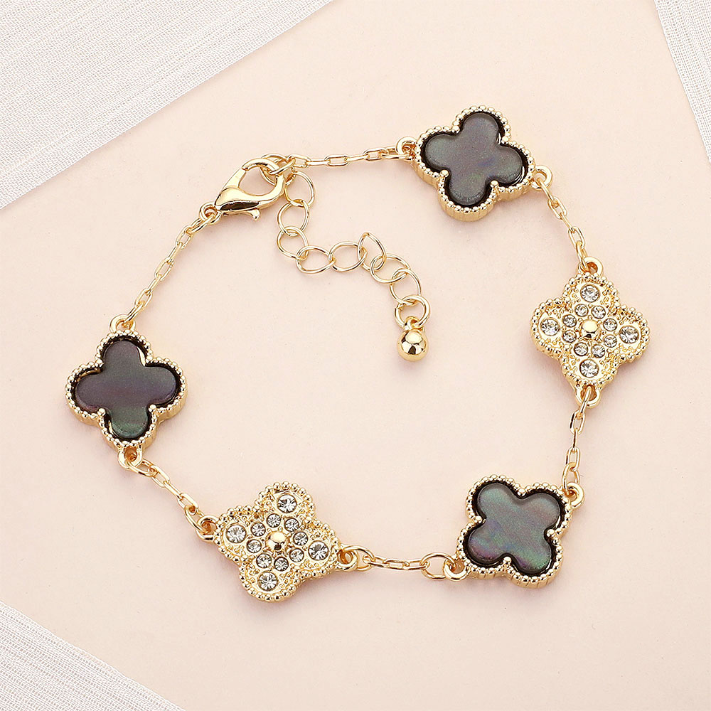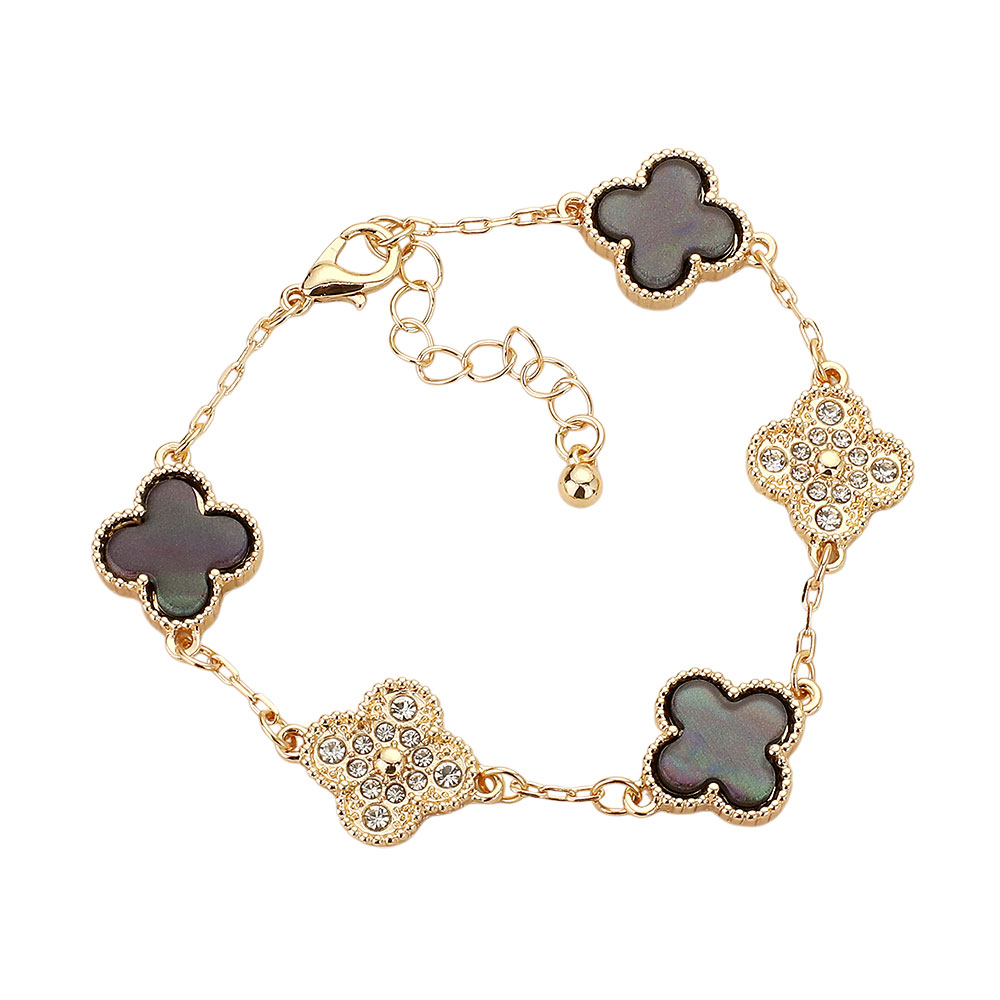 Stone Paved Natural Stone Quatrefoil Link Bracelet