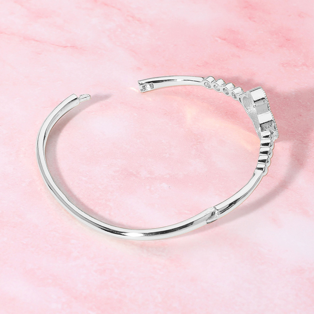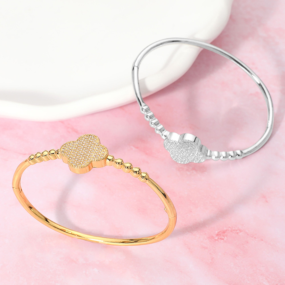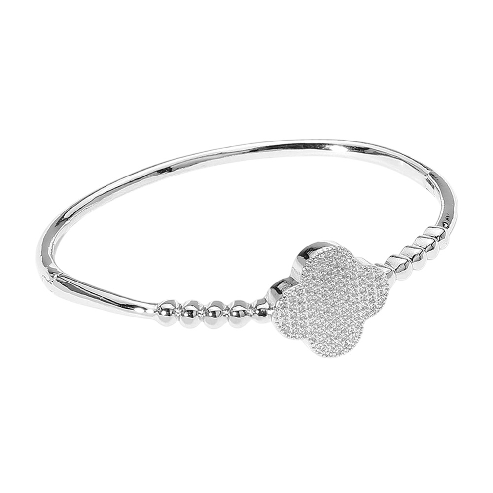 Stone Paved Quatrefoil Pointed Hinged Bangle Bracelet