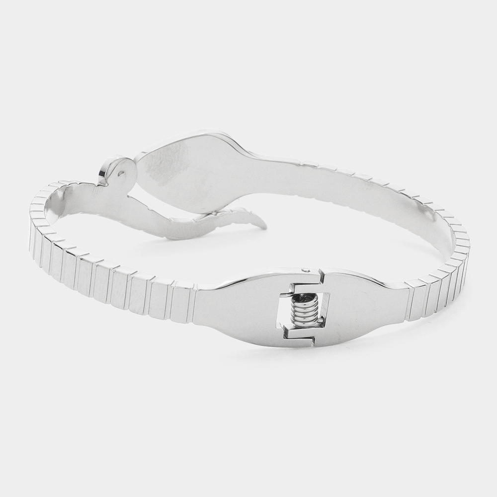 Round Metal Embossed Snake Plate Accent Cuff Bracelet