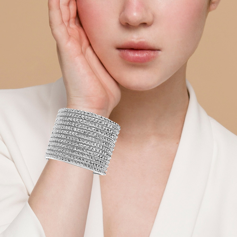 Stainless Steel Cutout Lattice Hinged Bangle Bracelet