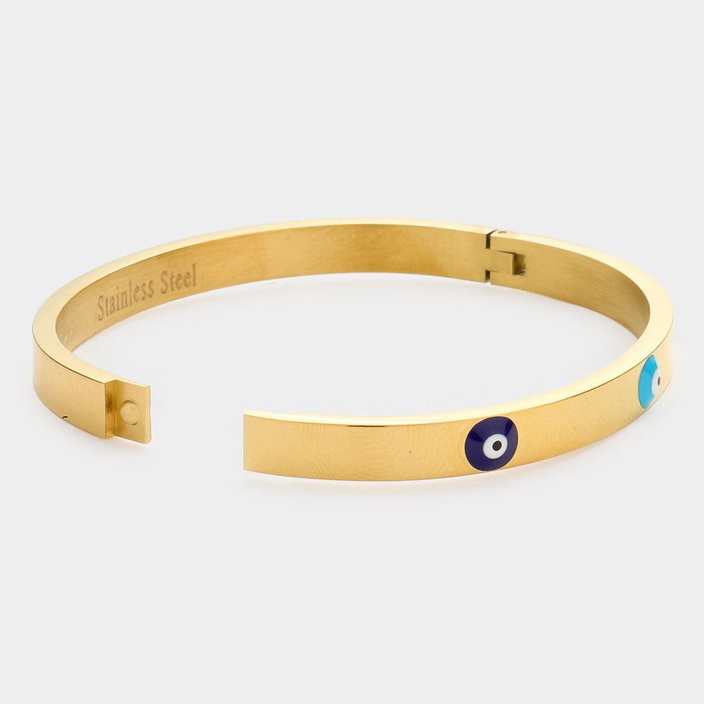 Triple Evil Eye Stainless Steel Bangle Bracelet Triple Evil Eye Stainless Steel Bangle Bracelet