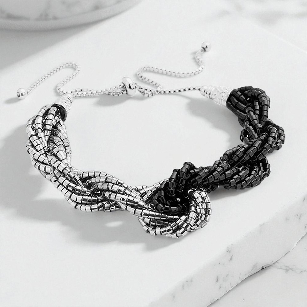 Two Tone Braided Beaded Adjustable Pull Tie Bracelet