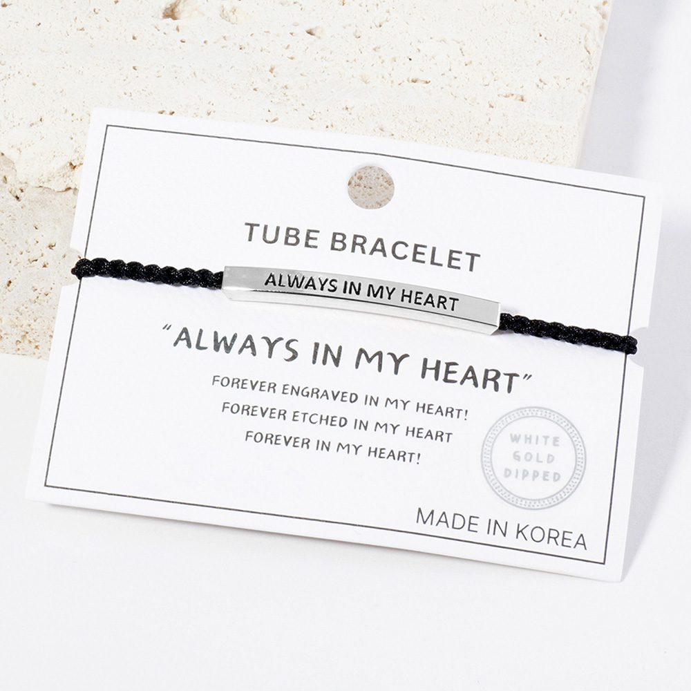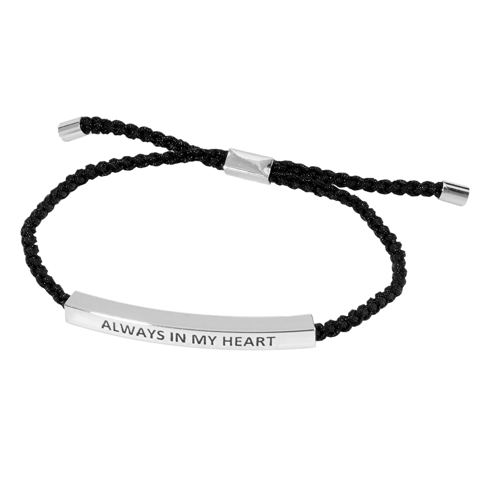 Gold Dipped ALWYAS IN MY HEART Message Bar Pointed Rope Adjustable Cinch Pull Tie Bracelet