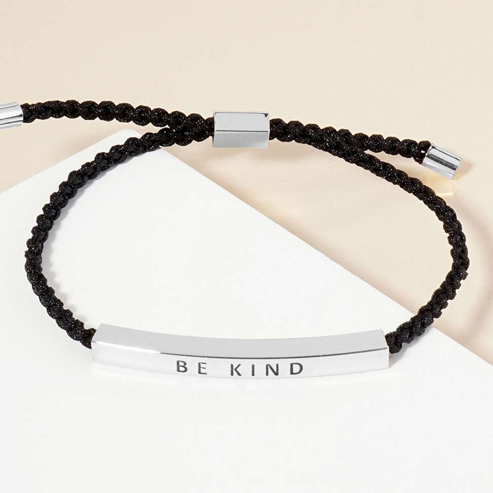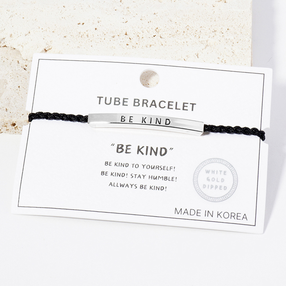 Gold Dipped BE KIND Message Bar Pointed Rope Adjustable Cinch Pull Tie Bracelet