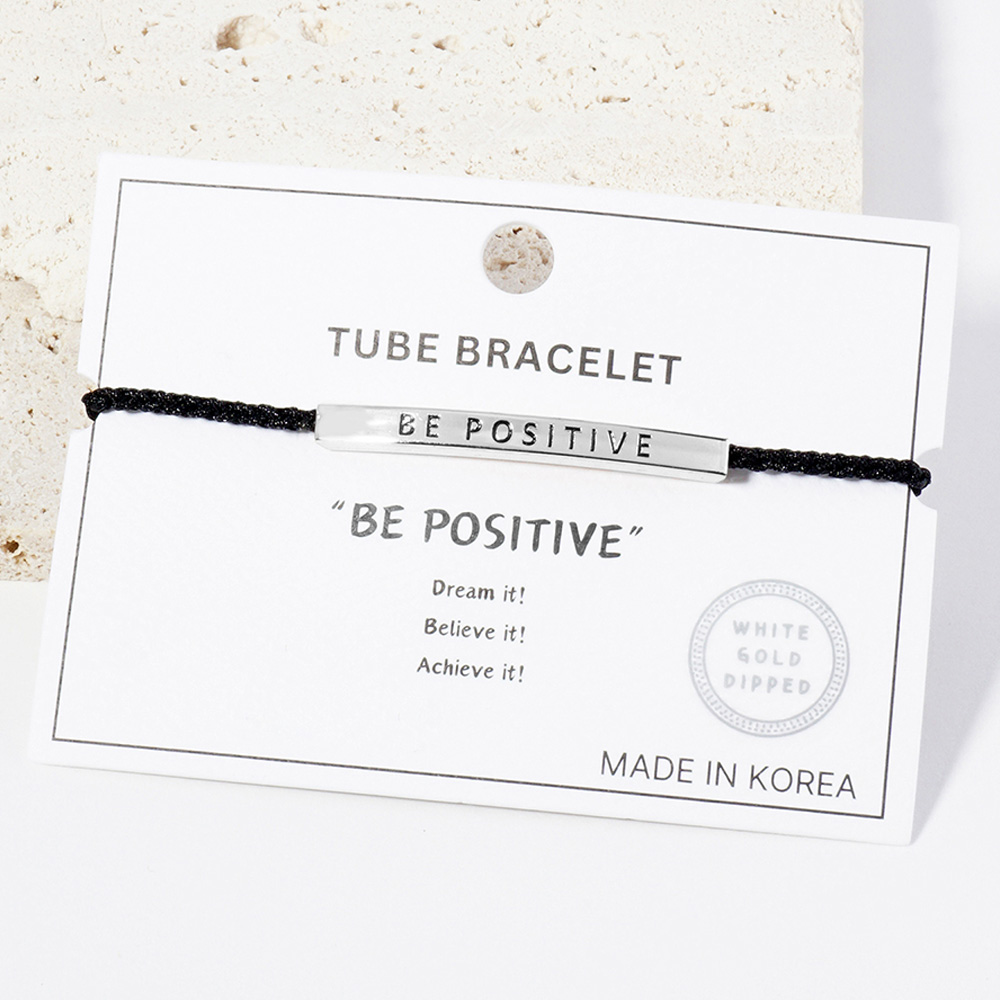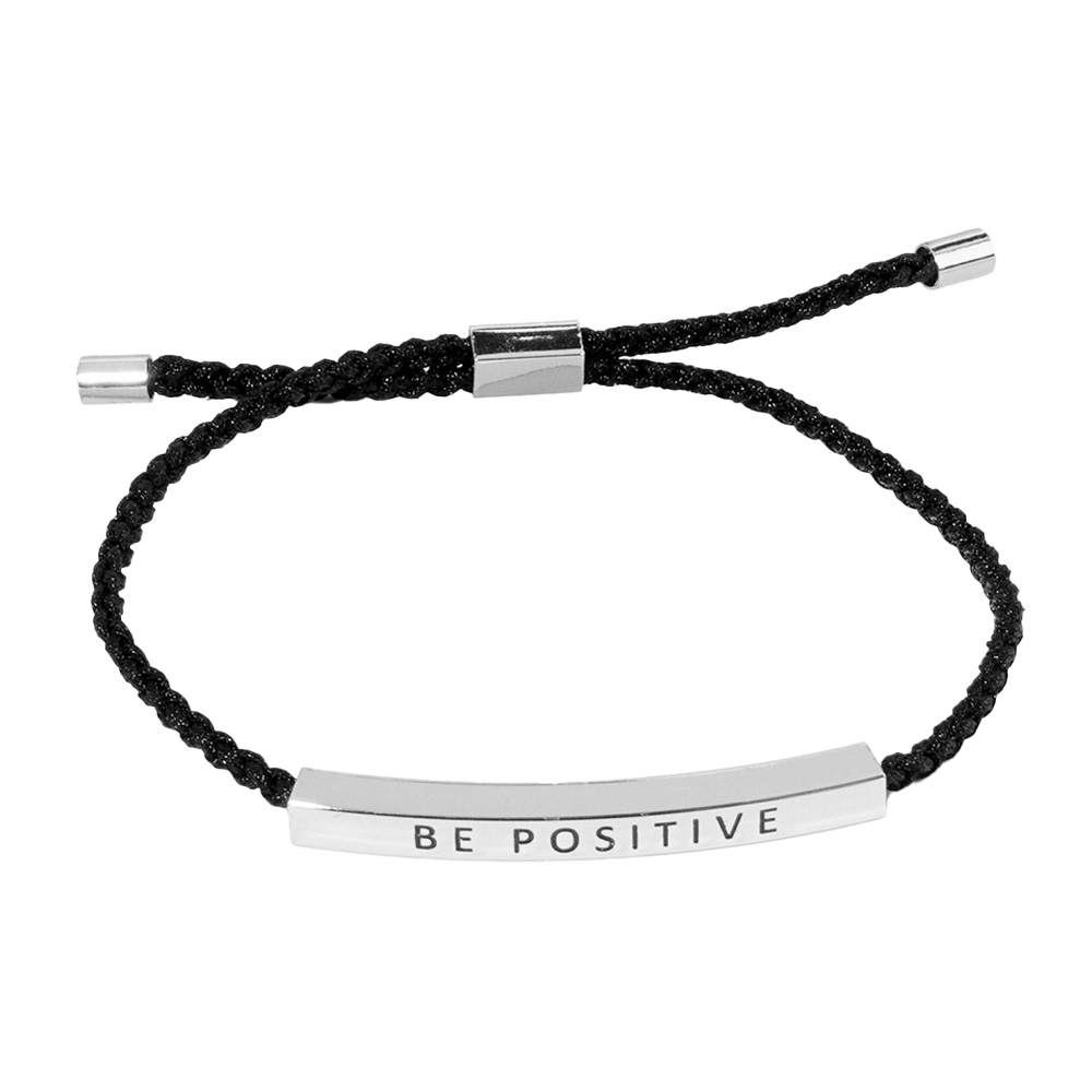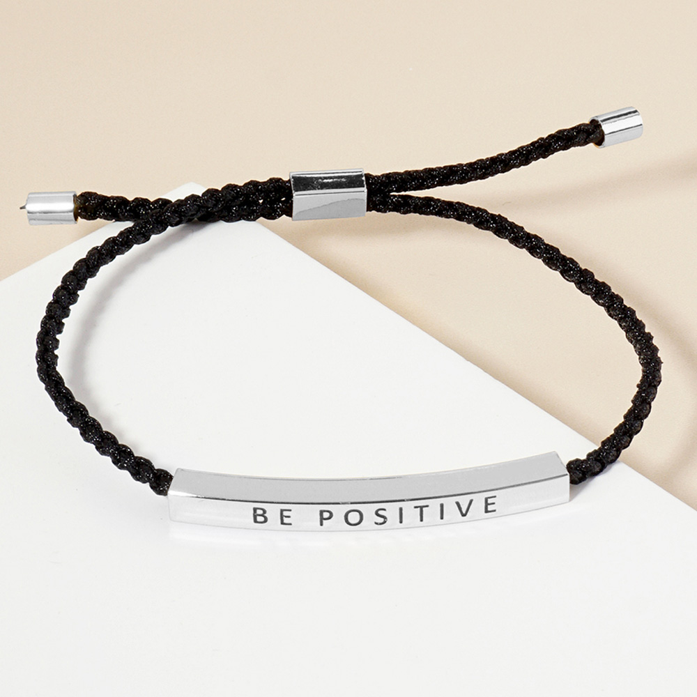 White Gold Dipped BE KIND Message Bar Pointed Rope Adjustable Bracelet