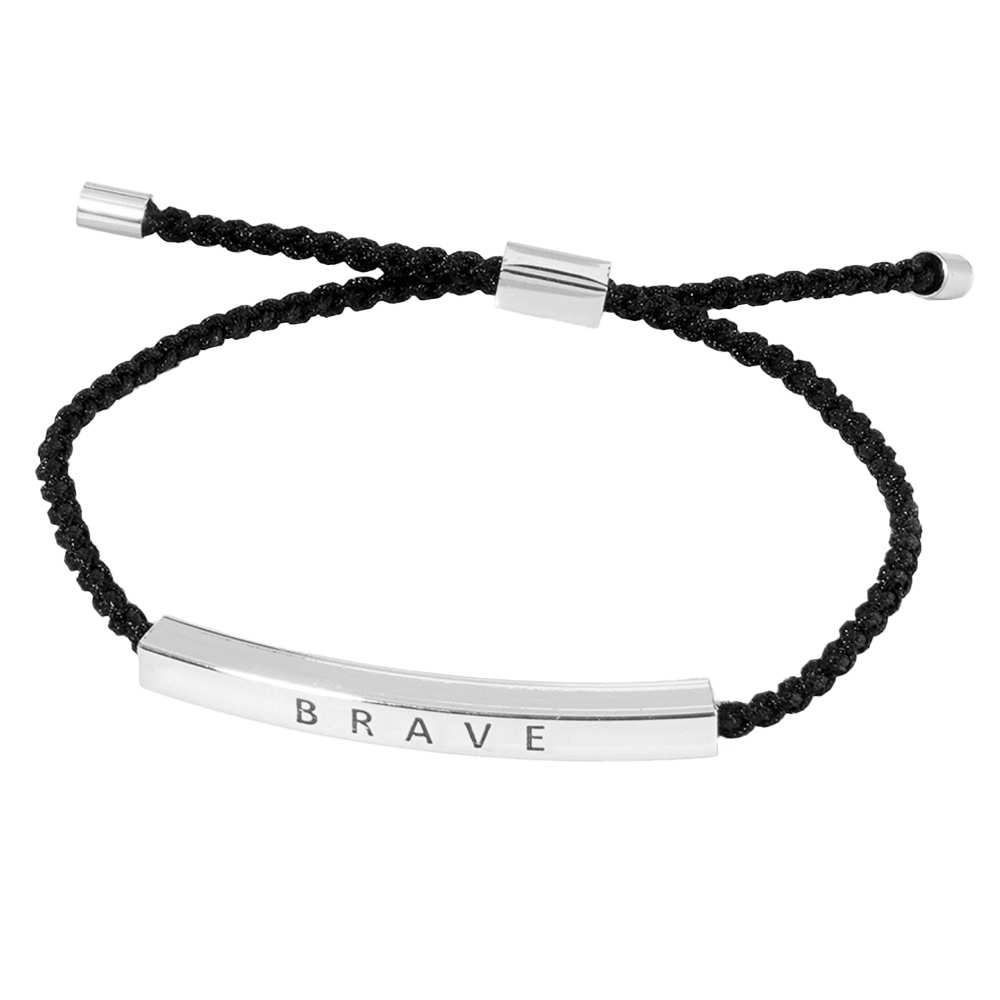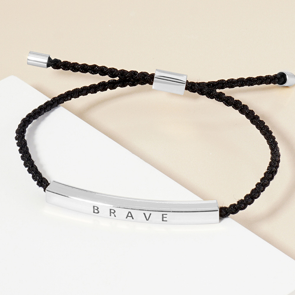 White Gold Dipped WARRIOR Message Bar Pointed Rope Adjustable Bracelet