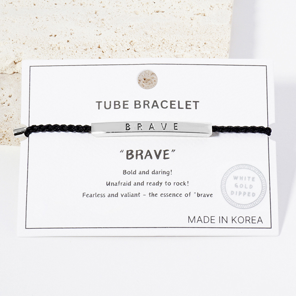 White Gold Dipped BE POSITIVE Message Bar Pointed Rope Adjustable Cinch Pull Tie Bracelet