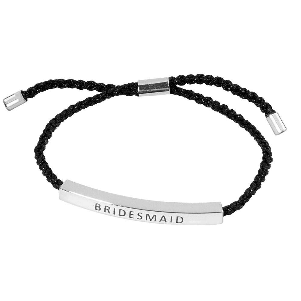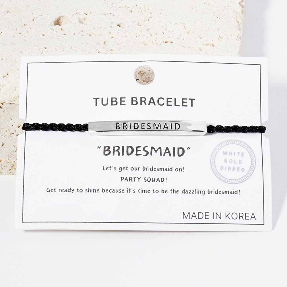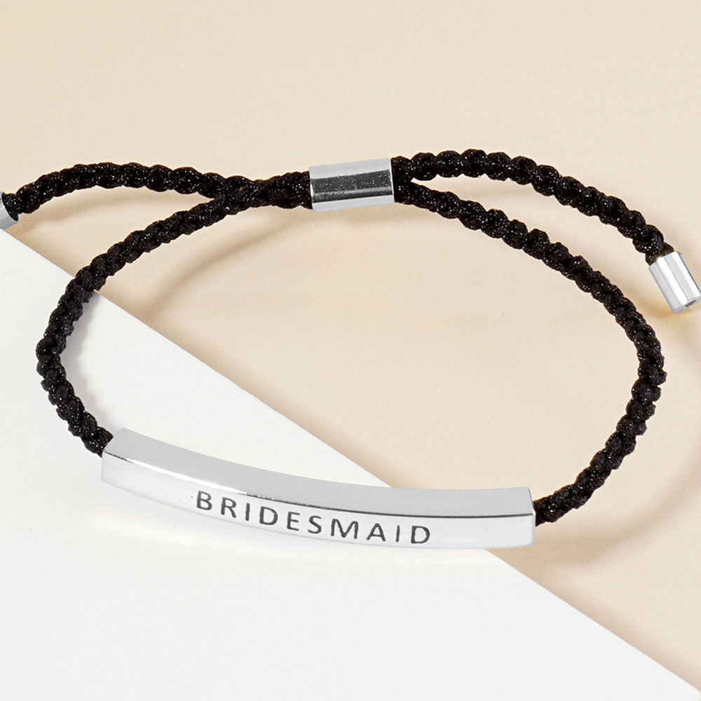White Gold Dipped BRIDE Message Bar Pointed Rope Adjustable Cinch Pull Tie Bracelet