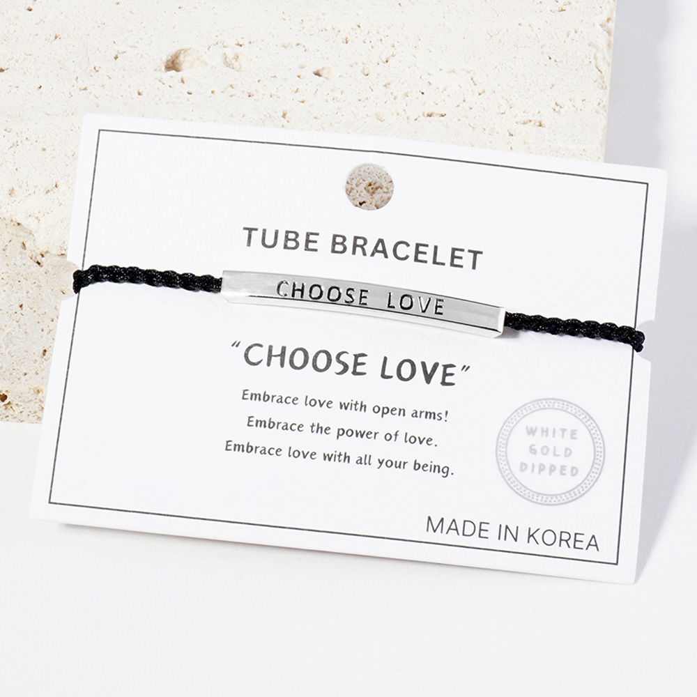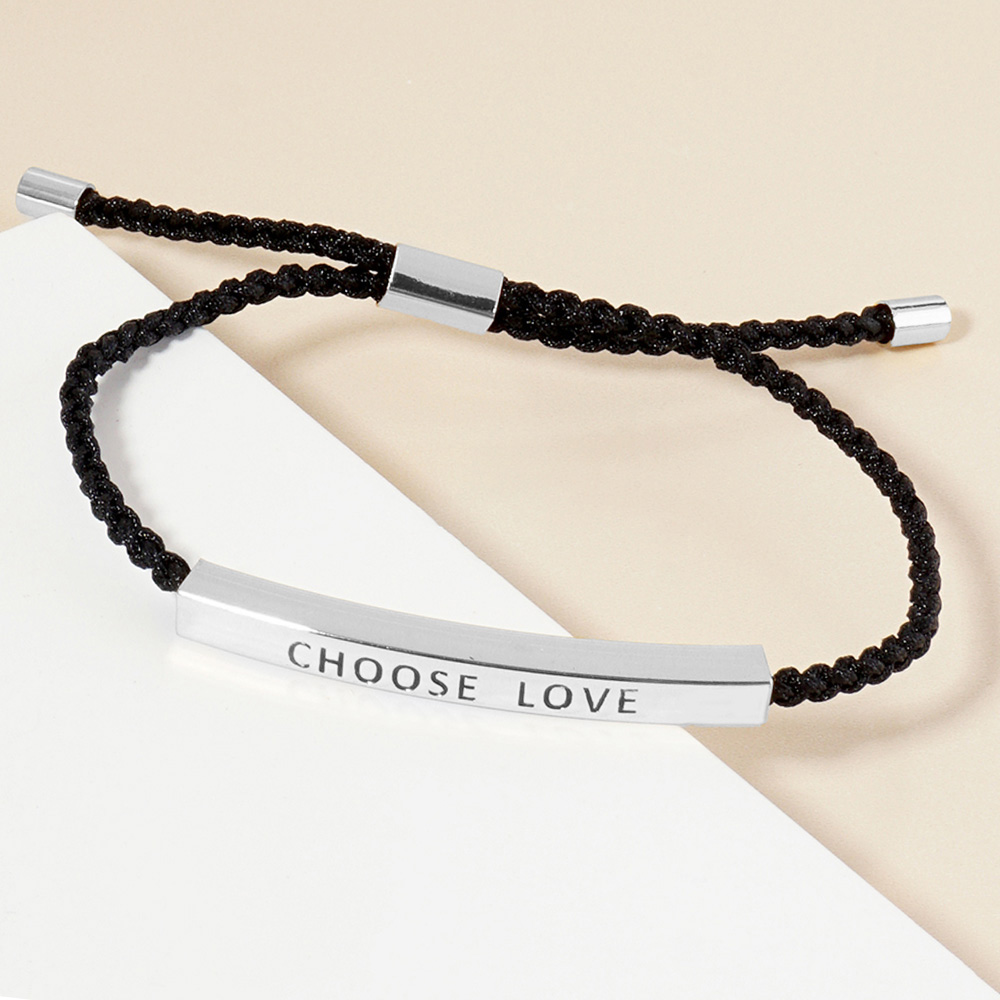 White Gold Dipped CHOOSE JOY Message Bar Pointed Rope Adjustable Cinch Pull Tie Bracelet