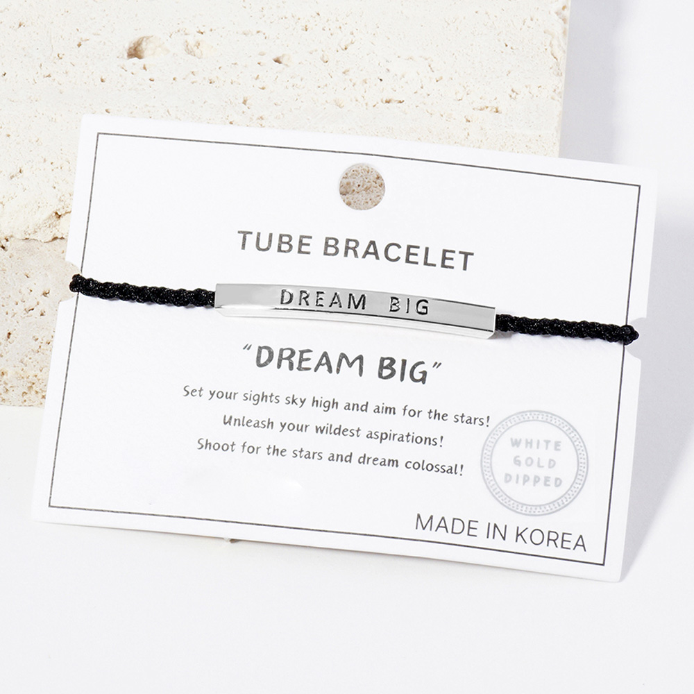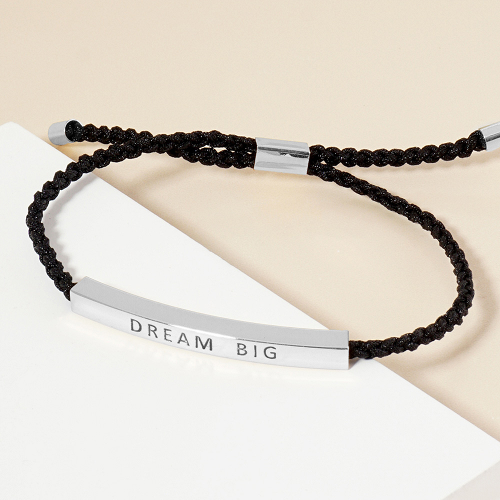 White Gold Dipped BRAVE Message Bar Pointed Rope Adjustable Cinch Pull Tie Bracelet