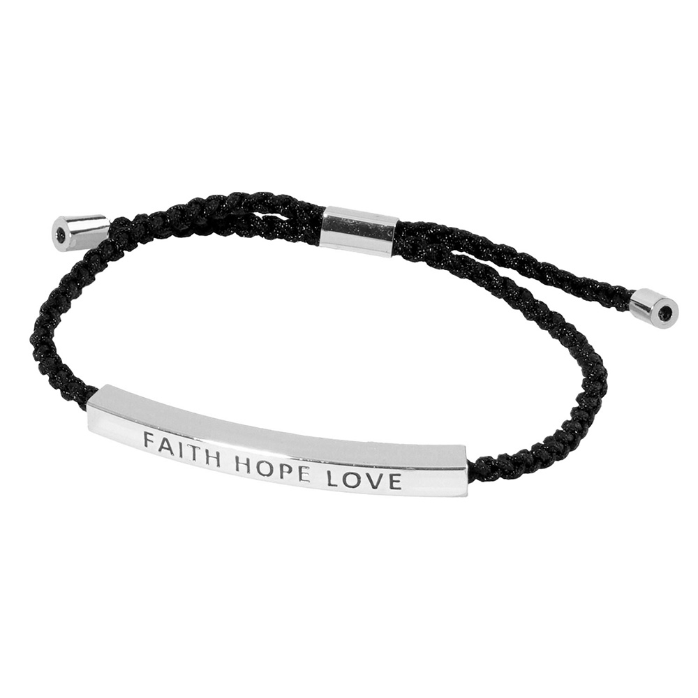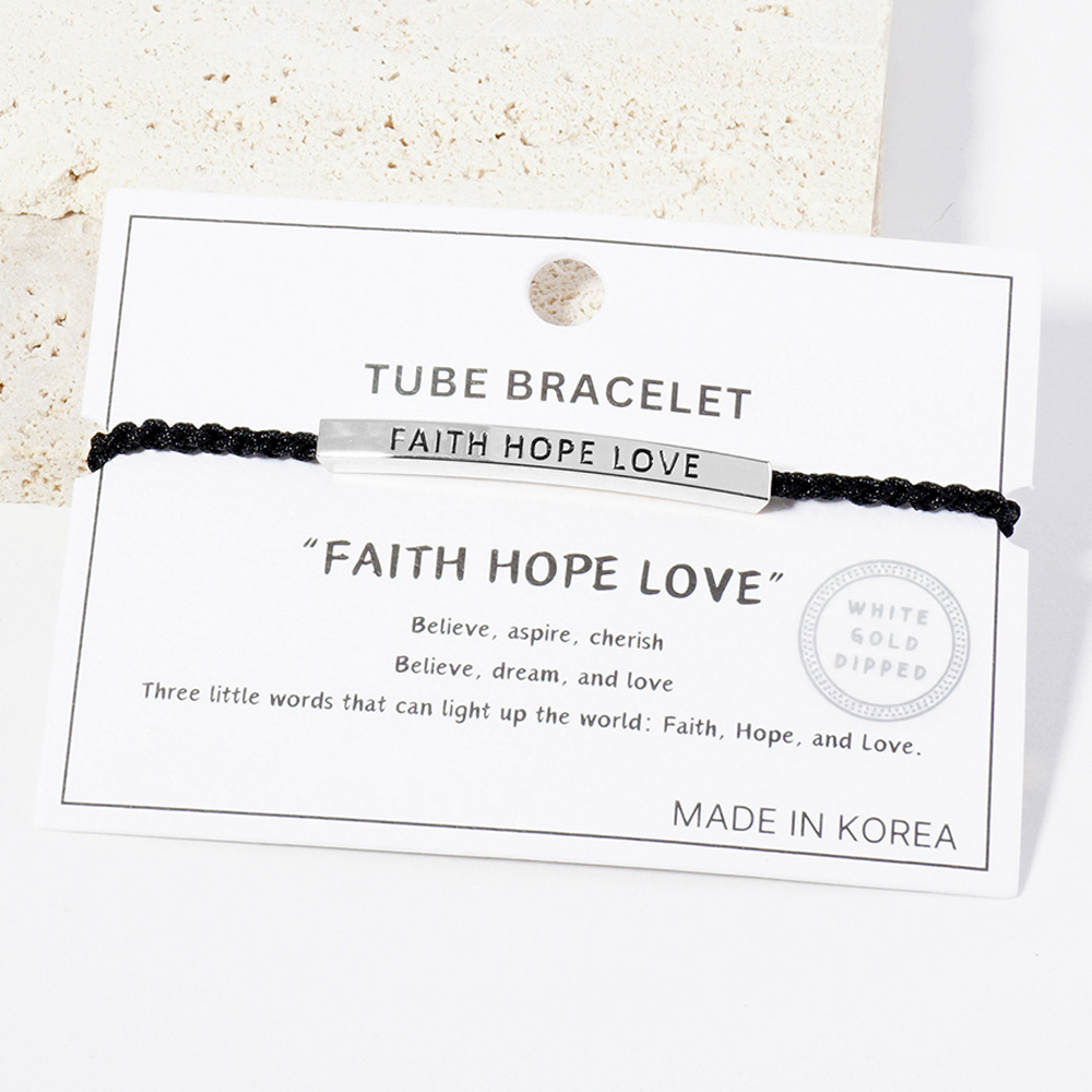 White Gold Dipped FAITH Message Bar Pointed Rope Adjustable Cinch Pull Tie Bracelet
