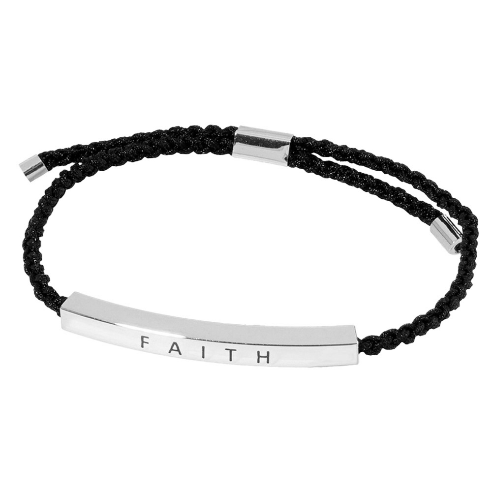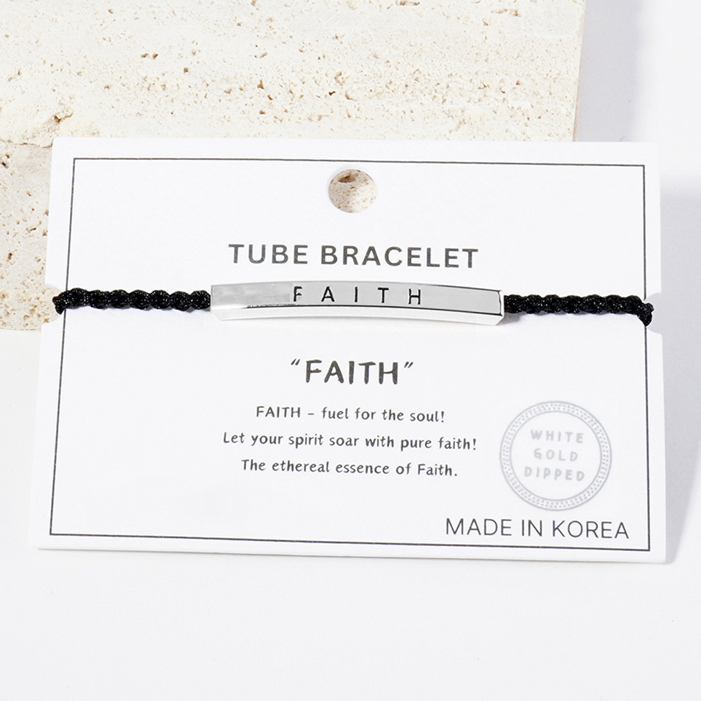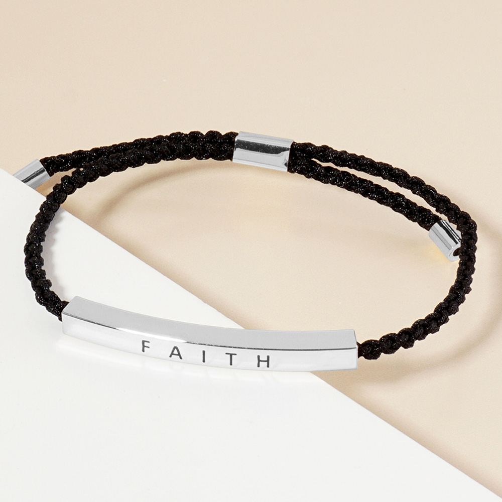 White Gold Dipped FAITH HOPE LOVE Message Bar Pointed Rope Adjustable Cinch Pull Tie Bracelet