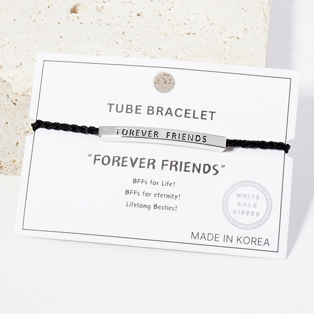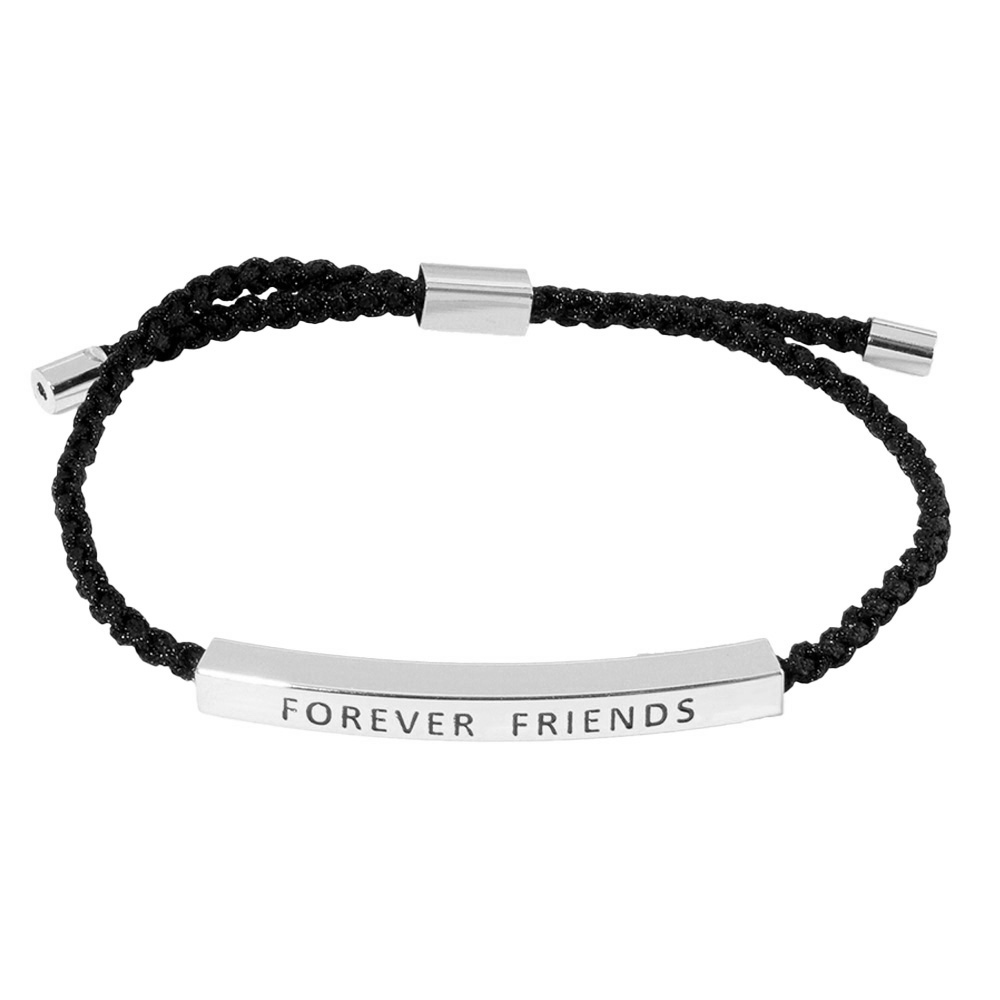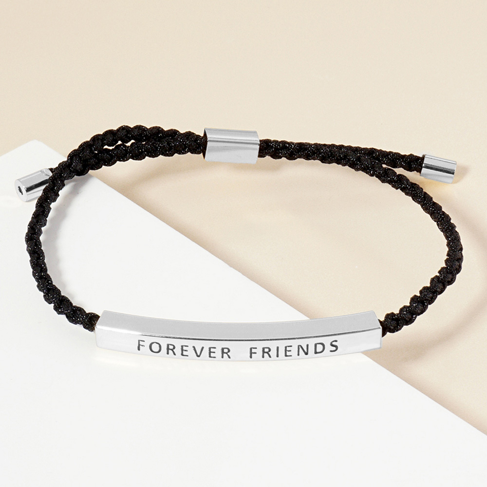 White Gold Dipped ALWAYS Message Bar Pointed Rope Adjustable Bracelet