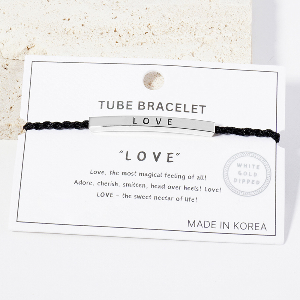 Gold Dipped LOVE Message Bar Pointed Rope Adjustable Cinch Pull Tie Bracelet
