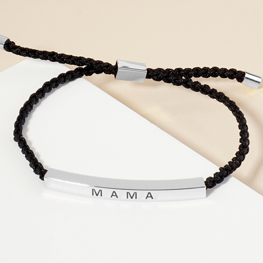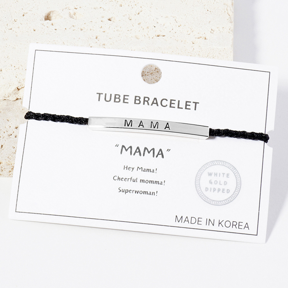 Gold Dipped MAMA Message Bar Pointed Rope Adjustable Cinch Pull Tie Bracelet